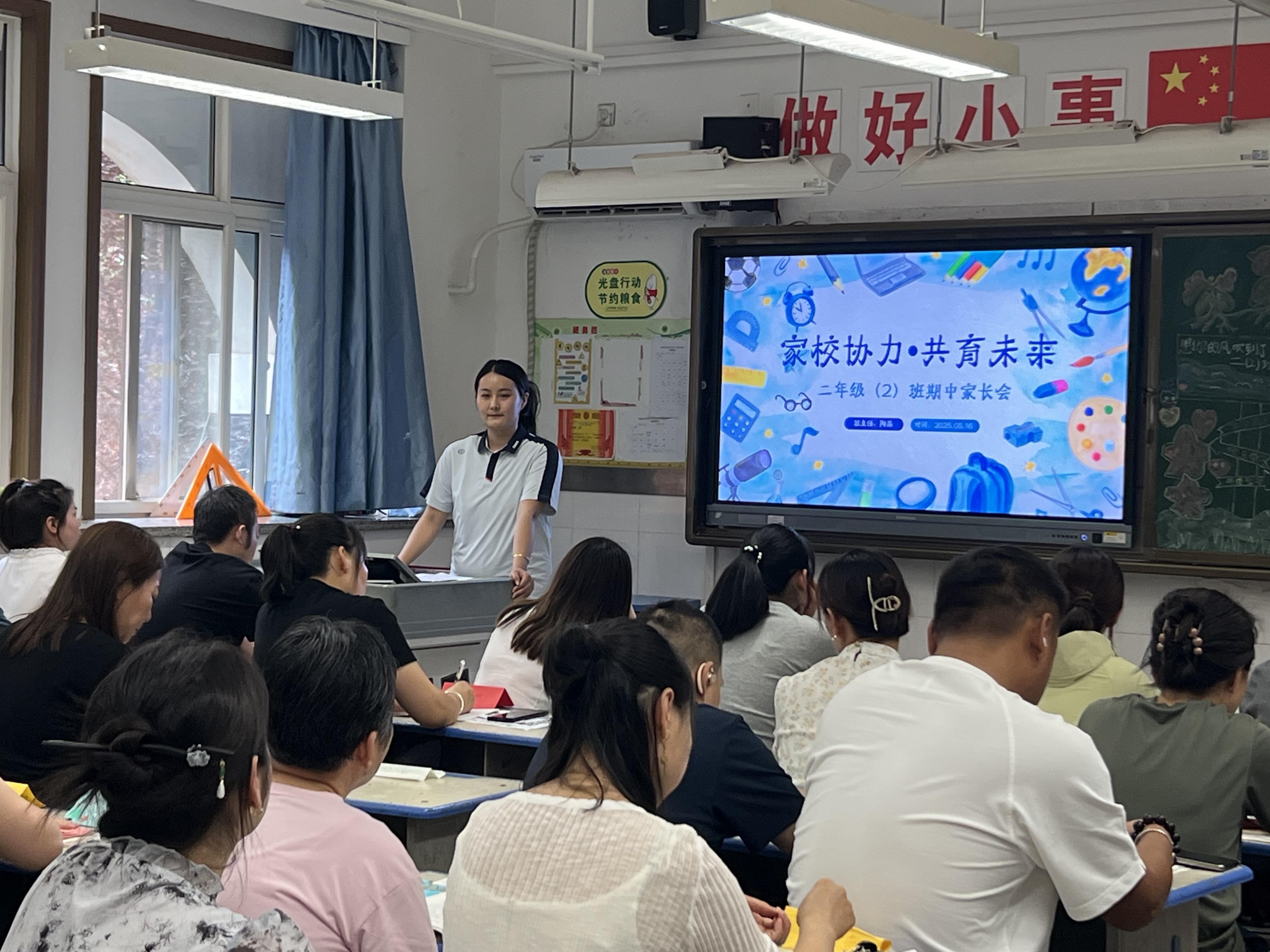 会议后,班级会议同步开展。家长与老师们深入交流。班主任就班级管理、学生表现进行了详细汇报,以图文并茂的PPT展示班级风貌,既有“小书虫”的阅读打卡记录,也有“运动小将”的赛场风采;任课教师则针对学科学习情况提出建议,并指导家长后半学期如何配合学校教育。一位四年级家长坦言:“老师对每个孩子的分析都像‘定制报告’,让我们知道如何配合”。