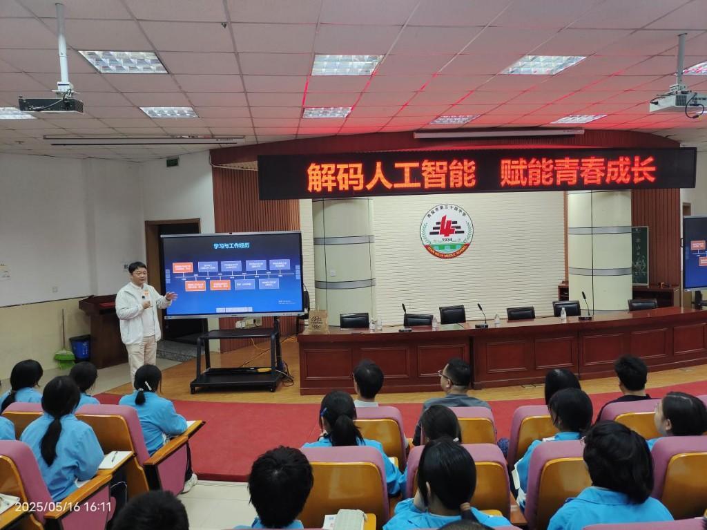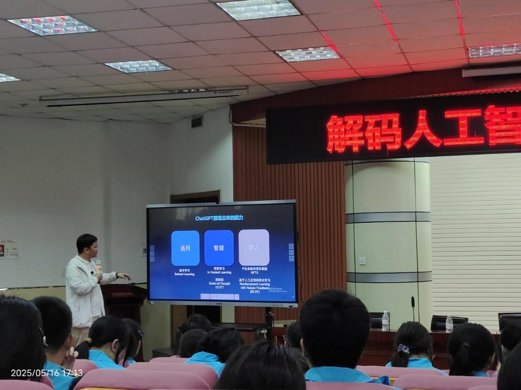 讲座中,刘康教授围绕人工智能的核心内涵、技术演进及实际应用展开系统讲解。通过游戏算法、电影AI角色等生动案例,阐释了人工智能如何赋予计算机兼具强大算力与人类感知决策能力的特性。他结合技术发展脉络,梳理了从简单算法到深度学习大模型的演进历程,并展示了刷脸支付、自动驾驶等技术在医疗、教育、交通等领域的应用场景,为师生描绘出未来智能化生活图景。