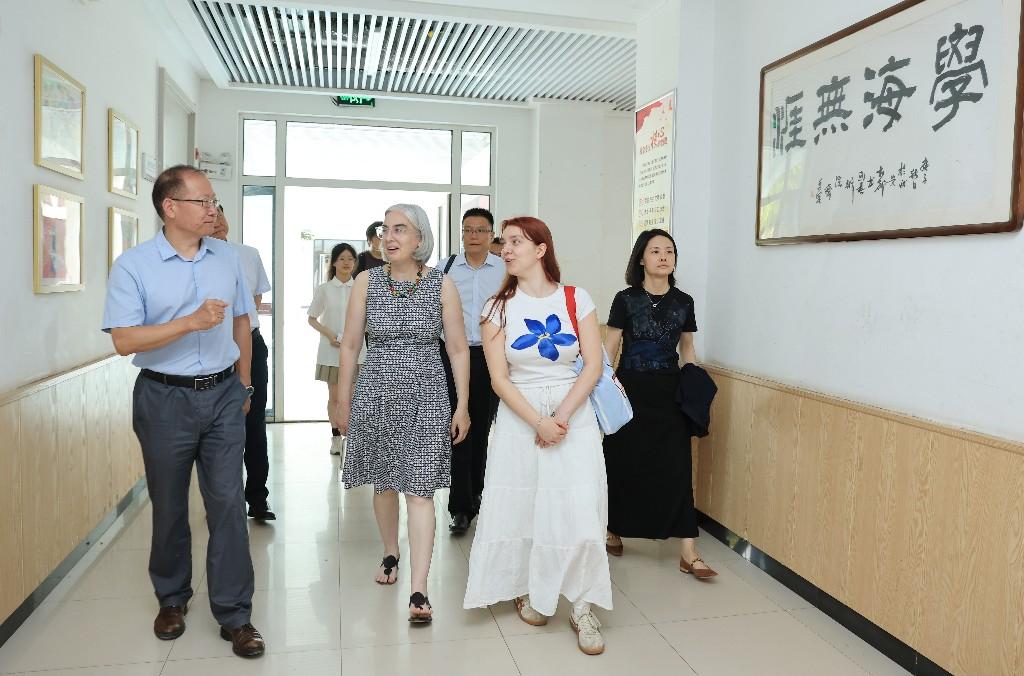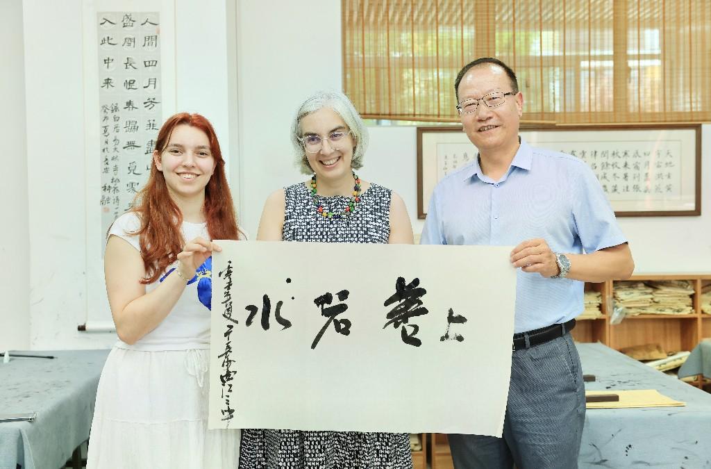 活动结束后,西安市曲江第三中学德语班的学生还化身“校园文化大使”,用流利的德语向国际友人介绍校园,Carola Krüger、Khadija等对学生的书法、手工和绘画作品给予高度评价。