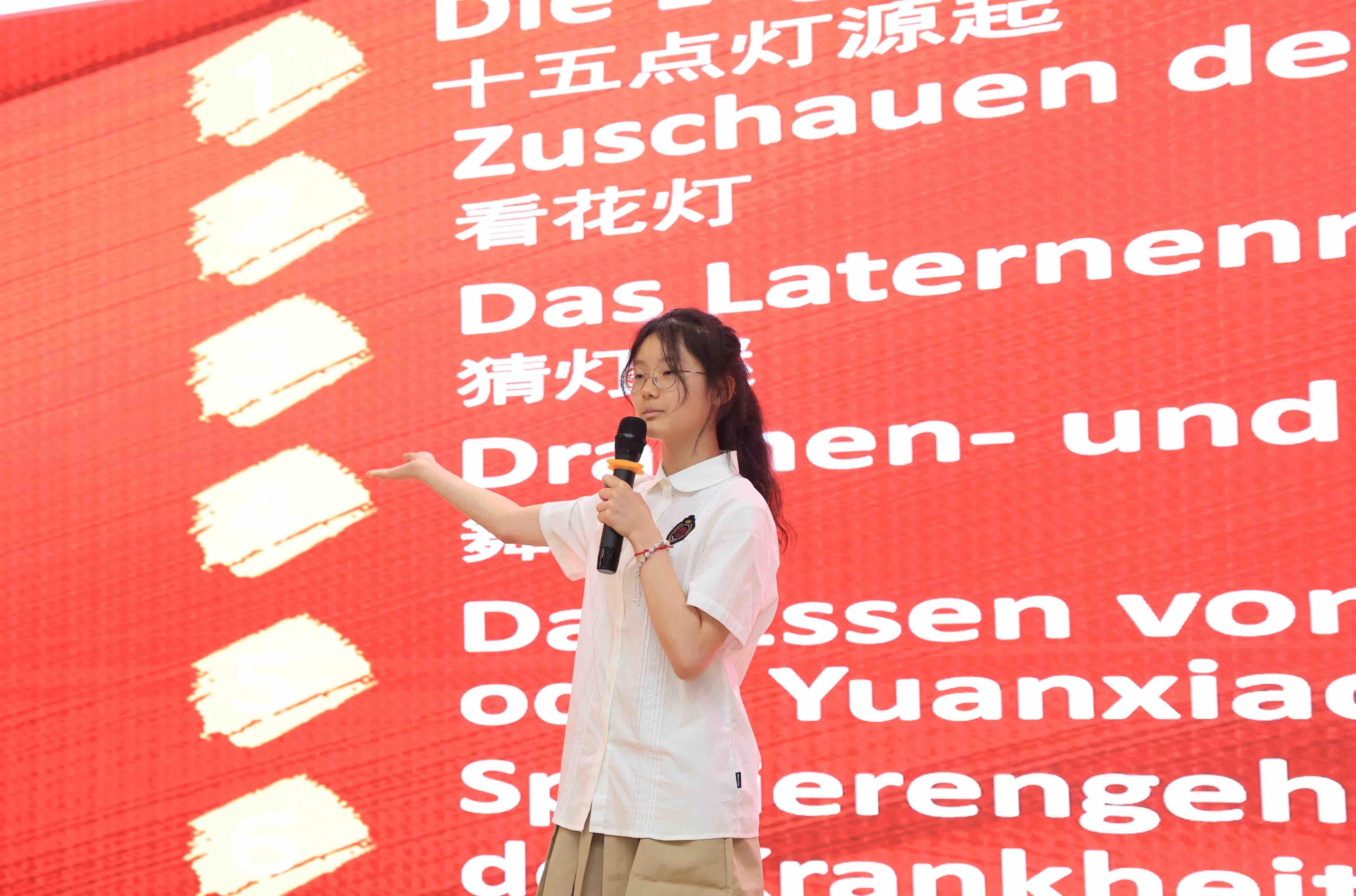 崔平介绍,学校自2023年开设德语班,目前已经在初一、初二两个年级开设了8个德语班,德语课已成为校本课程的重要部分。两年来,学校德语班的教学成果获得哥德语言中心的好评。通过德语班的学习,学生不仅增强了国际视野,口语和成绩得到提升,跨文化思维能力也得到培养,校园国际化氛围更浓。