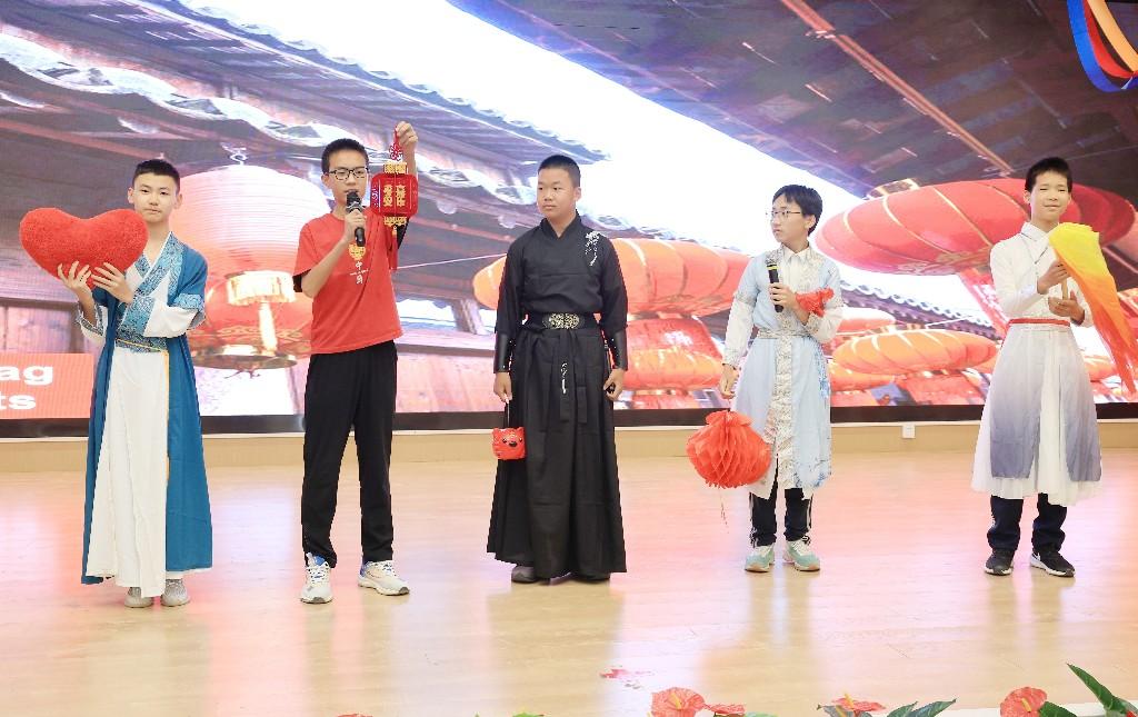 Khadija老师以德国文化节日“狂欢节”为主题,为学生带来了一场精彩的文化盛宴,Khadija老师从科隆狂欢节的庆祝活动、有趣习俗等方面展开分享,介绍了自己参与狂欢节表演的生动经历,让到场的学生了解到了形式多样的庆祝活动,更让学生们在原汁原味的德语情境中感受到了德国节庆文化的包容。西安市曲江第三中学德语班的学生则以流利的德语,通过情景剧演绎的形式向国际友人展示了中国元宵节点灯的历史渊源和传统习俗。