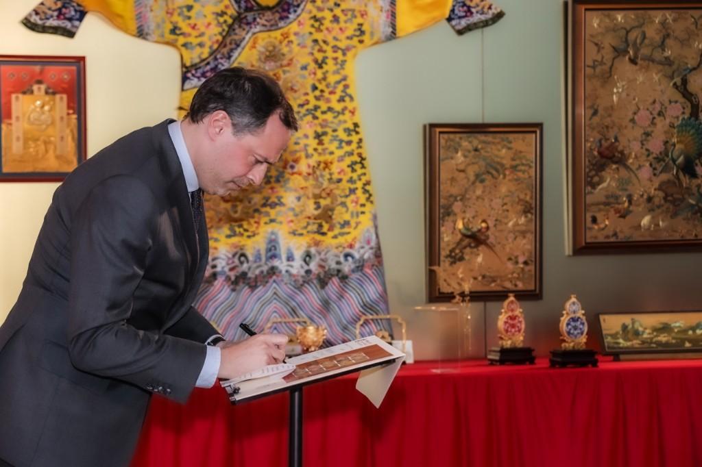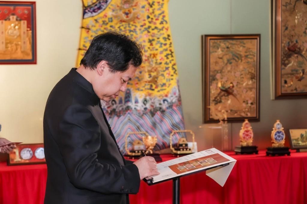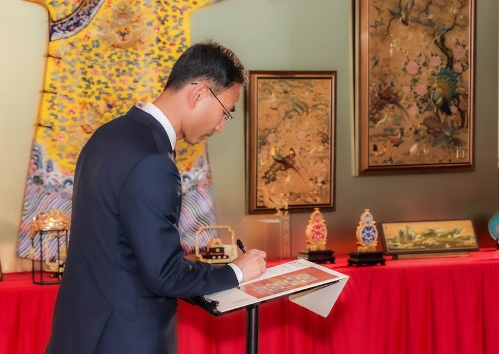 互动体验:嘉宾可现场书写首日封、佩戴花丝工艺饰品,通过“数字故宫”互动装置解锁文物背后的文化密码。