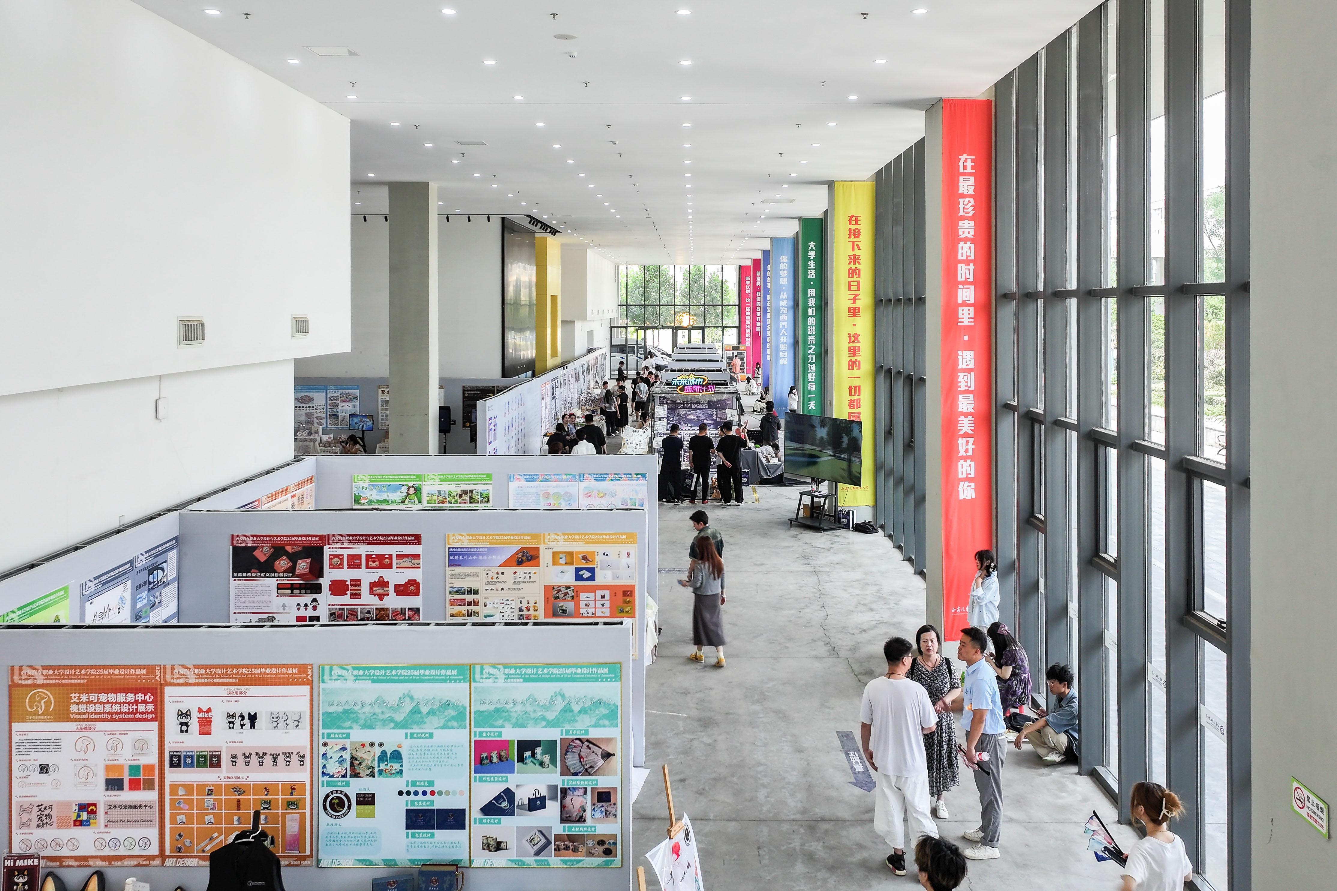看着厅内的一幅幅作品,设计艺术学院的老师郭雅欣感慨道:“2021年初秋,我们迎来这群懵懂孩子。经过四年的成长与磨炼,他们的这些作品不仅是技艺的呈现,更是一千多个日夜的成长刻度。作为教师,我很幸运能够见证他们从青涩到从容的蜕变。希望他们永远保持对美的感知力与创造力,在数字时代的浪潮中做清醒的造梦者。”