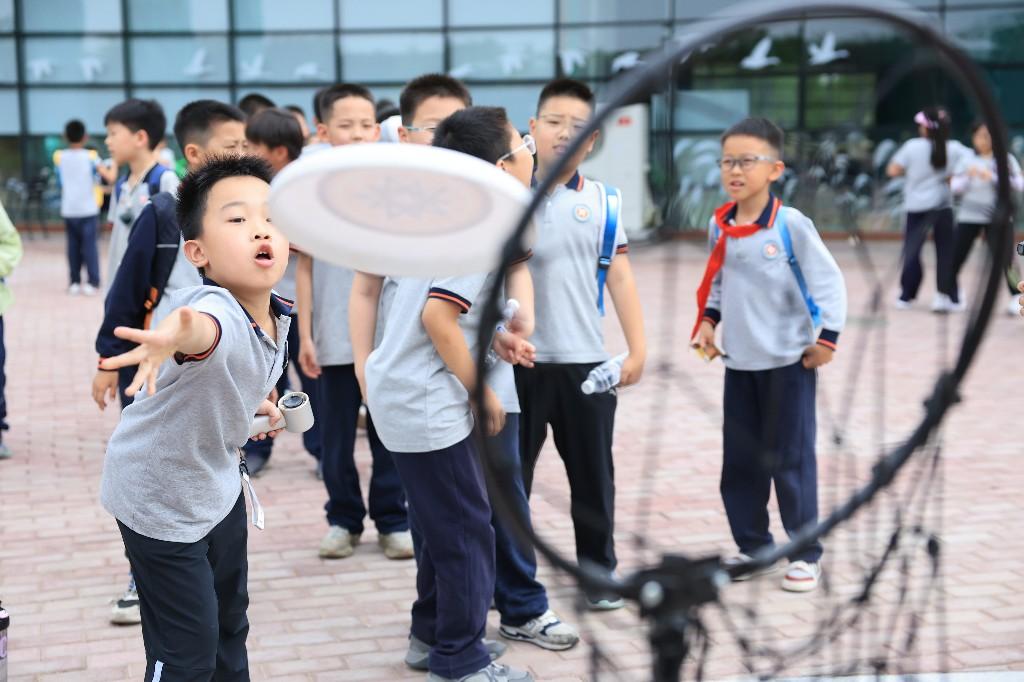 压轴的“科学运动会”将活动推向高潮。学生们齐心协力完成运输挑战,在团队合作中深化物理认知。“我们不仅要比速度,更要拼科学策略!”学生在协作中领悟到知识应用的真谛。活动通过寓教于乐的形式,培养了学生的创新思维与实践能力。飞盘投掷区化身为流体力学实验室,学生们在老师指导下,通过调整手腕角度感受伯努利原理如何影响飞行轨迹。