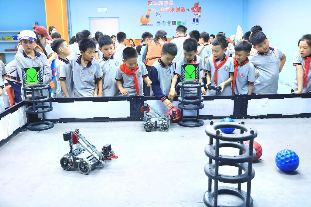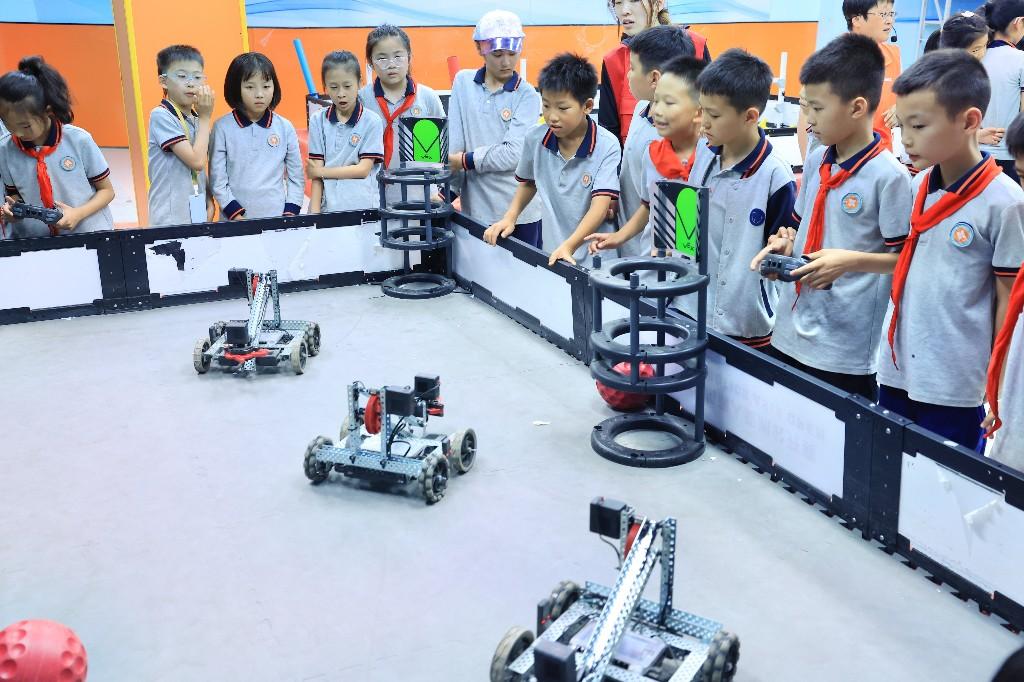在体验冠军路环节,学生们亲手操作,体验全球规模最大的机器人竞赛世界锦标赛决赛项目,配备世界冠军同款竞技机器人套件,通过“实战操作-原理解密-策略开发”的三维教学体系,帮助孩子建立对科学的兴趣。
