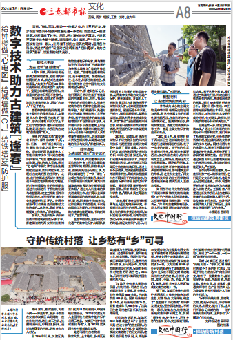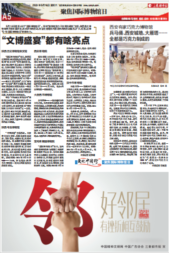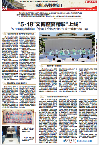 三秦都市报于4月19日起在报网端同步开设《文化中国行》专栏专题,以及“探访古建筑老街区”“探访传统村落”等子栏目。围绕国际博物馆日,报网端同步开设《文化中国行·聚焦国际博物馆日》专题,三秦网、秦闻客户端连续8天策划推出《文化中国行·高校探“宝”》系列短视频产品,用镜头生动讲述深藏高校的文化宝藏,弘扬中华优秀传统文化。