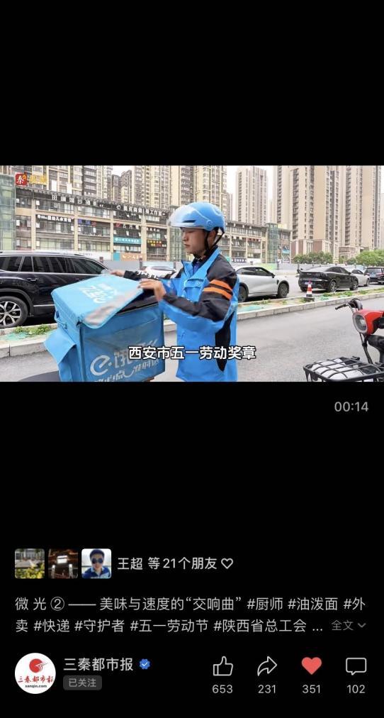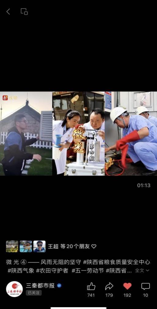 5月1日至5月9日,与省总工会联合策划制作《微光》系列短视频,选取8个不同行业普通劳动者的工作日常,生动展示了我省一线劳动者朝气蓬勃、阳光向上的精神风貌。三秦都市报视频号浏览量达170,291次,抖音获得156,637次观看,三秦网、秦闻客户端总浏览量68.6万次。