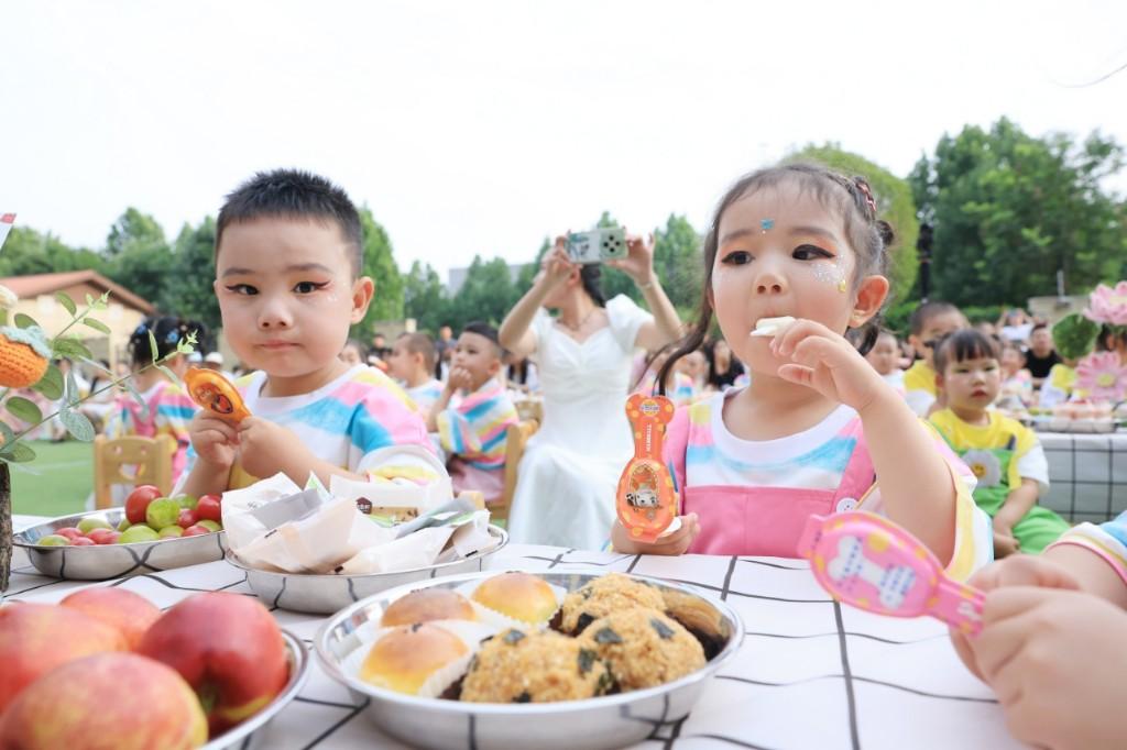 草坪音乐会现场,茵茵草地变身音乐的海洋。孩子们欢快的歌声飘荡在幼儿园上空,他们或许会忘词、偶尔跟不上节奏,但那挺直的小身板、认真的眼神,早已成为成长路上最耀眼的勋章。孩子们坐在一起分享甜蜜,吐露童言,每一个眼神交汇都编织成童年最温馨的画卷。