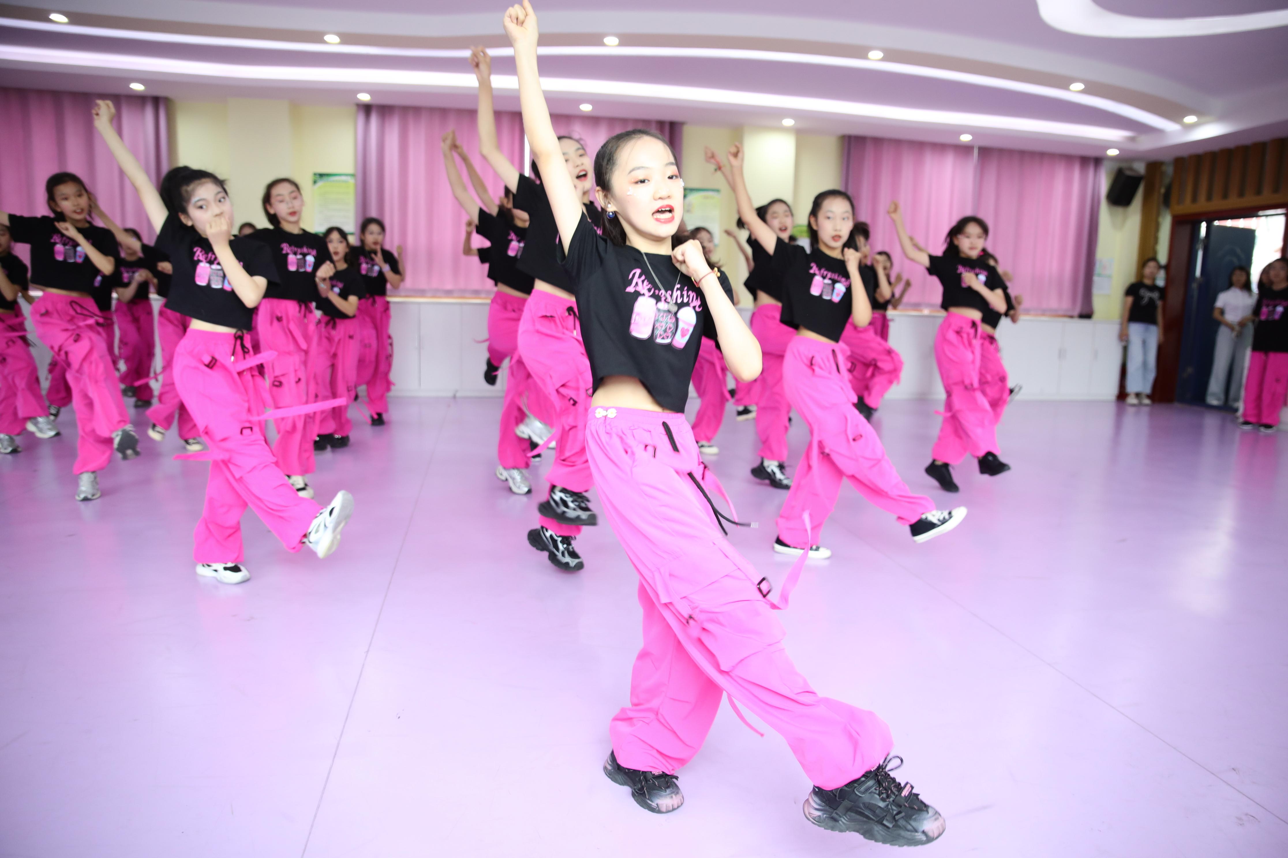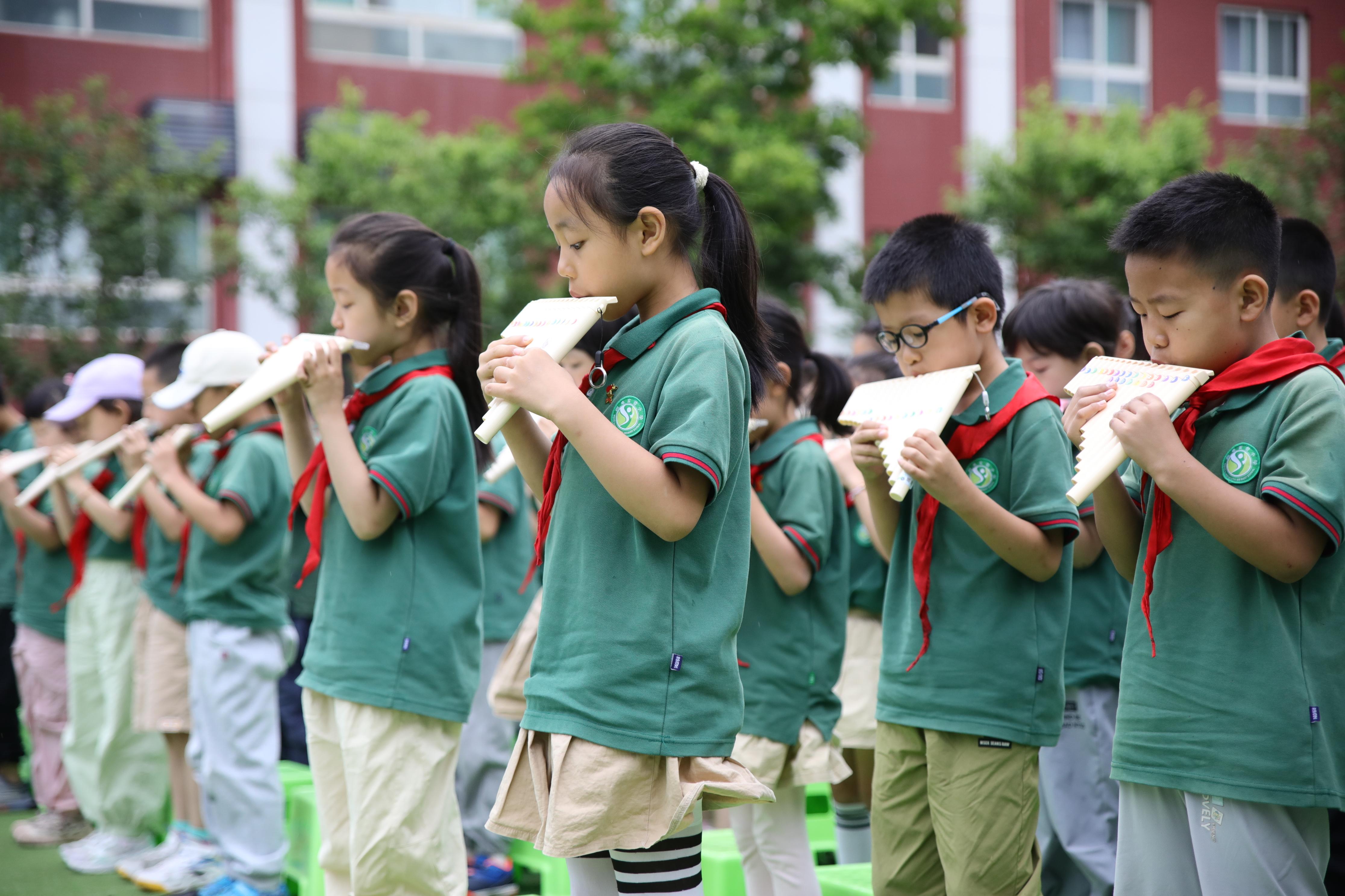 艺术节的高潮莫过于全校千名学生带来的排笛大合奏,悠扬的笛声回荡在整个校园。此外,啦啦操、武术、管乐等20余个节目轮番上演,孩子们用稚嫩却充满力量的表演,展现了新时代少年阳光自信的风采。活动现场还特别设置了艺术作品展,充满奇思妙想的儿童画、手工作品吸引嘉宾驻足拍照。