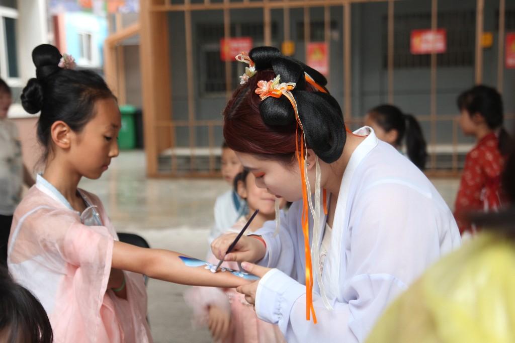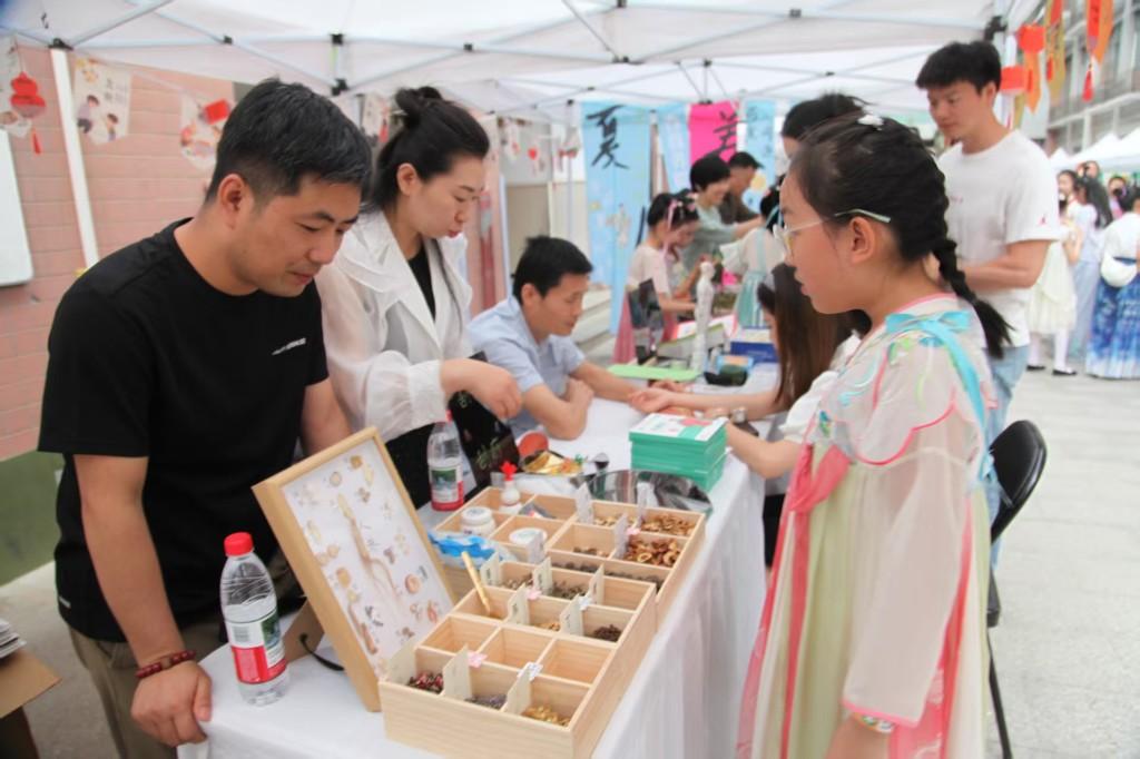 食品区飘来粽叶清香,孩子们亲手制作绿豆糕时,老师讲述《离骚》中的香草意象;手部彩绘师在捐书学生腕间勾勒出孙悟空、林黛玉形象,文化符号悄然流转。