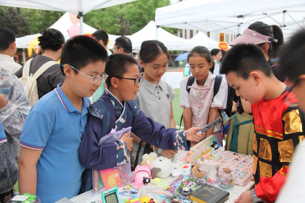 在墨香萦绕的班级义卖区,数千册旧书在“书香角落”重获新生。每顶帐篷前,“环保三宝”回收箱承载着旧玩具、手工艺品与童书,构成流动的知识星河。