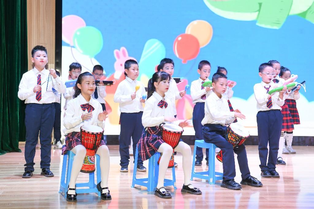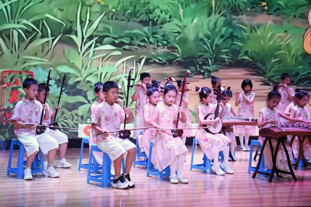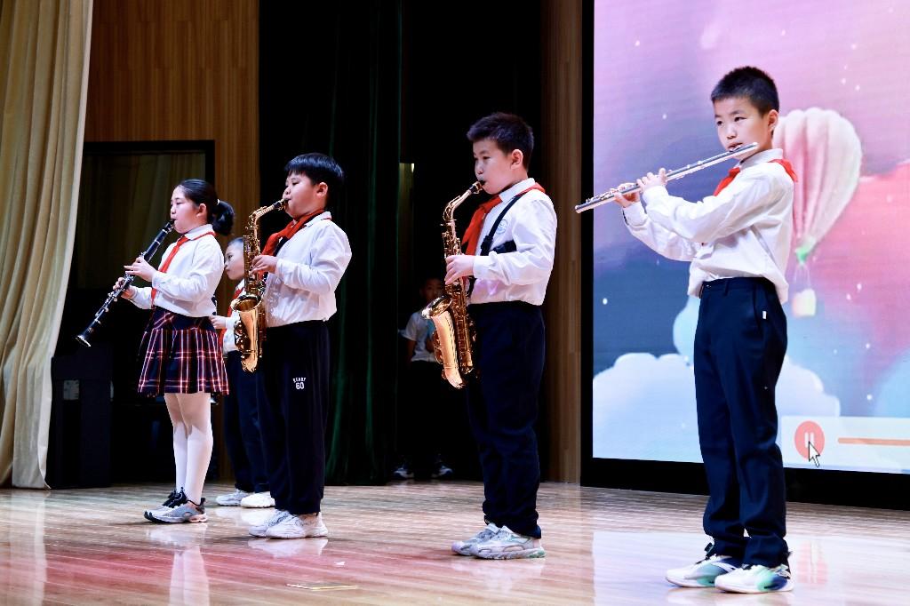 演出在一片欢快而热烈的氛围中盛大拉开帷幕。民乐团的孩子们身着传统服饰,手持乐器,宛如一群从古典画卷中走出的精灵。他们带来的演奏《小美满》,旋律悠扬婉转,似潺潺溪流,轻轻流淌进每一位听众的心田,传递出满满的幸福与温暖。管乐团的小演奏家们则以饱满的精神状态登场,他们手中的乐器仿佛被赋予了生命,演奏出的《欢乐进行曲》节奏明快有力,如同欢快的鼓点,瞬间点燃了现场的气氛,令人心情愉悦,忍不住随着节奏轻轻摇摆。童声歌唱社的孩子们宛如天籁的嗓音响起,一首《崖上的波妞》,纯净而空灵,他们用稚嫩的歌声唱出了童真与美好,仿佛带着观众走进了一个充满奇幻色彩的童话世界。