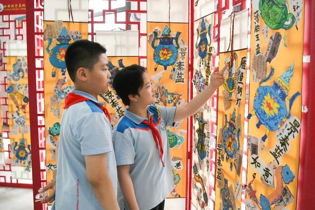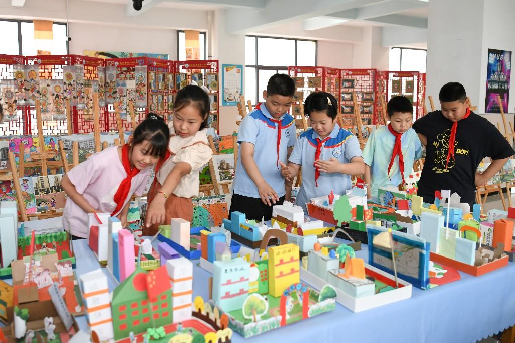 与此同时,学校在各楼层精心举办了社团作品展。展览现场宛如一个艺术的殿堂,汇集了绘画、书法、航模、手工、机器人、皮影等14个社团学生的优秀作品。绘画作品色彩斑斓,充满了孩子们天马行空的想象力;书法作品笔力遒劲,展现出小书法家们的深厚功底;航模和机器人作品造型独特,体现了孩子们对科技的探索与创新精神;手工作品则精致细腻,彰显出传统文化的独特魅力。这些作品在校园内形成了一道亮丽的风景线,吸引了全校师生纷纷驻足欣赏,大家对孩子们的才华赞叹不已。