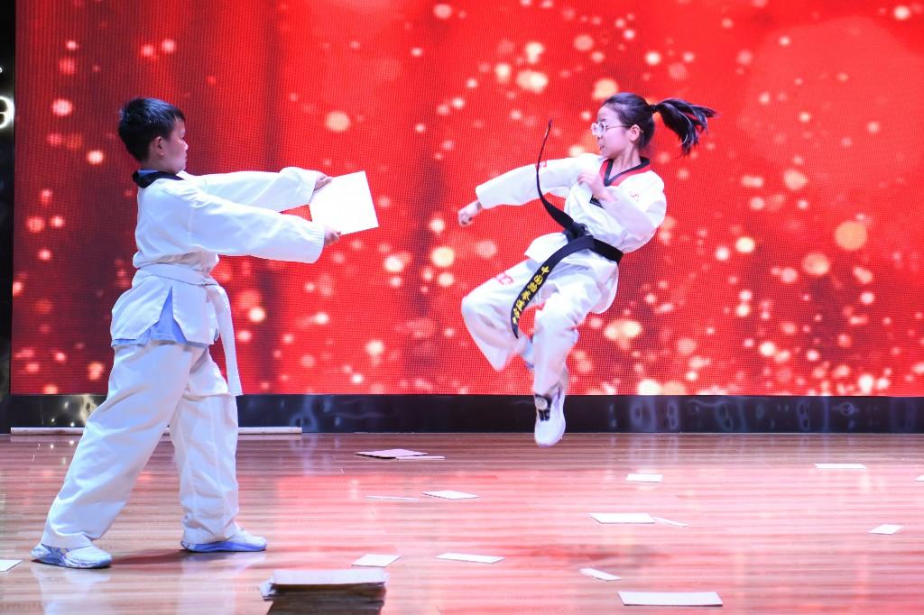 除了音乐类节目,舞蹈、朗诵、武术等形式多样的节目也轮番上演,精彩纷呈。舞蹈节目中,小舞者们身着华丽的舞衣,随着音乐的节奏翩翩起舞,动作轻盈优美,时而如灵动的飞燕,时而似盛开的花朵,赢得了观众的阵阵掌声。朗诵节目《红高梁》中,孩子们声情并茂,用富有感染力的声音传递着的力量,让观众沉浸其中。武术表演更是刚柔并济,小武术家们的一招一式都充满了力量与韵味,展现出了中华武术的博大精深。
