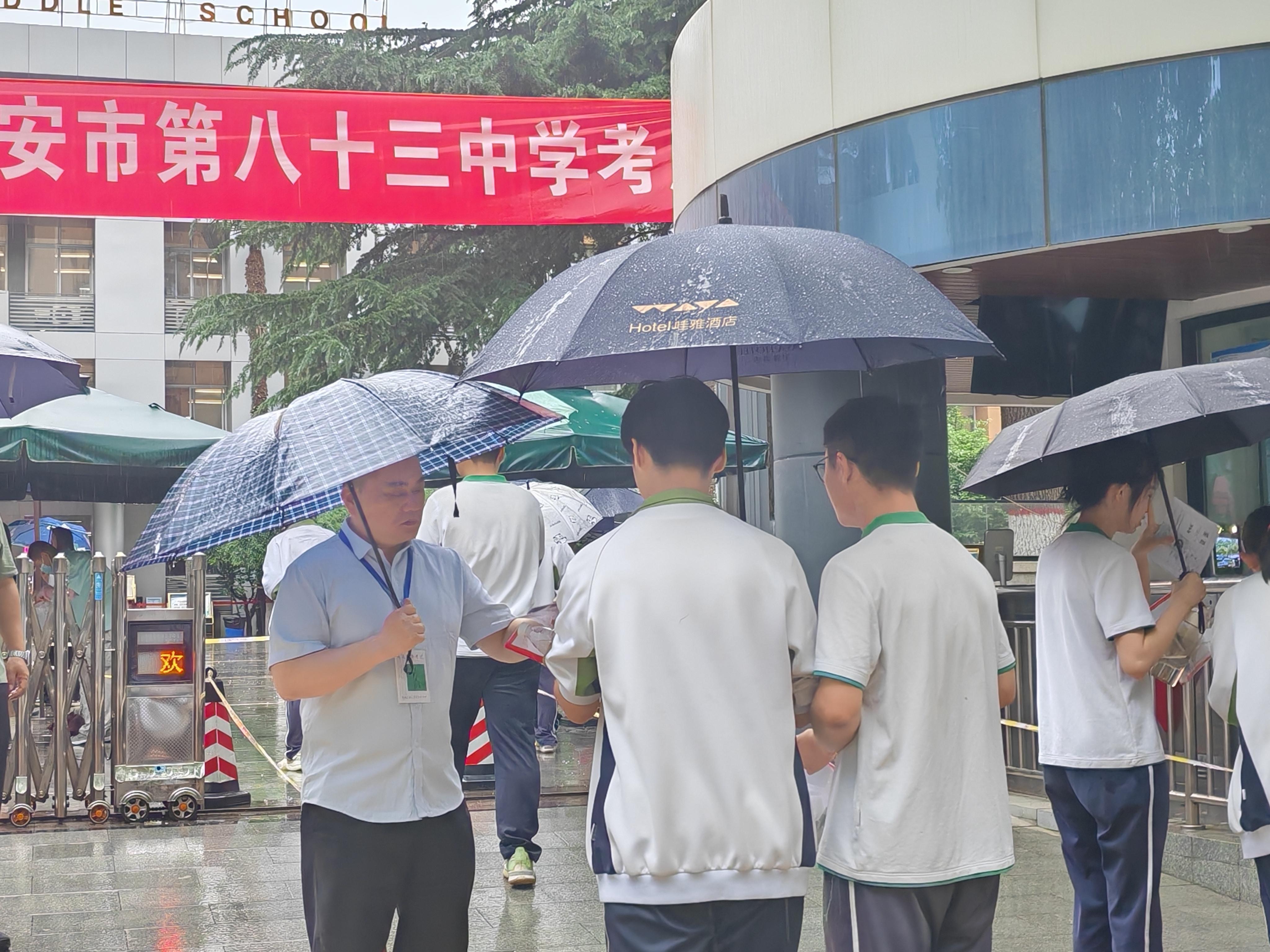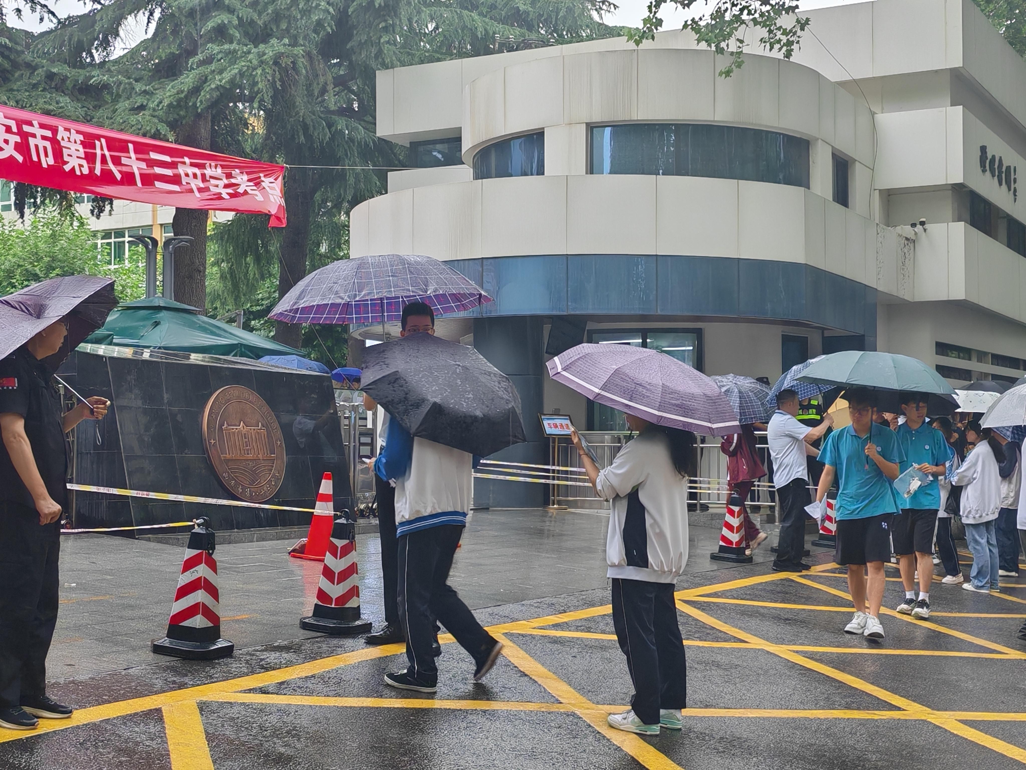 6月7日8时,西安的天空细雨绵绵,市83中考点外,考生们在此迎来人生中最重要的考试之一。