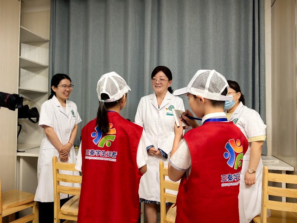 高锦程和闵木兮两位学生记者,目光敏锐地捕捉到了现场忙碌的医护人员。他们快步走到碑林区社区医院医生孙莉娜面前,开始了一场充满关怀的采访。