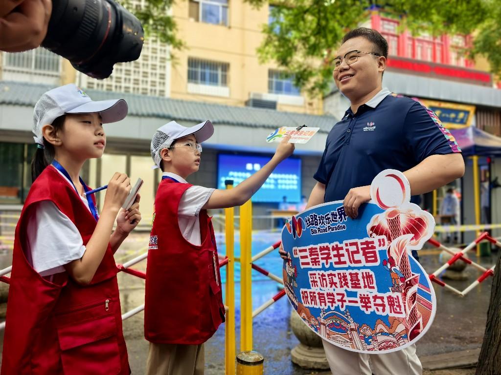 三秦都市报-秦闻讯(记者 王顺)6月7日,2025年新高考的大幕在万千期待中正式拉开。当日上午7:30,天空飘着淅淅沥沥的细雨,西安市第八中学考点外却早已人潮涌动,热闹非凡。来自西安市浐灞三小和西安市浐灞六小的“三秦学生记者”张煜薇、杨依晨、闵木兮、高锦程,在三秦都市报网全媒体记者的带领下,宛如一群灵动的小精灵,手持话筒、相机等专业采访装备,精神抖擞地穿梭在熙熙攘攘的人群中,用他们稚嫩却充满热情的双眼,直击高考现场,对考生家长、助考单位、执勤警察等展开了生动而深入的实地采访。