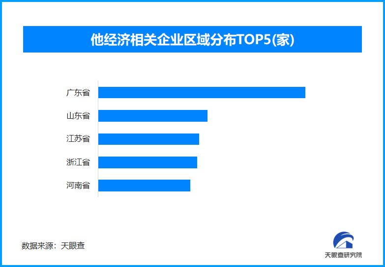天眼查专业版数据显示,截至目前我国现存在业、存续状态的他经济相关企业超3181.3万家。其中,2025年截至目前新增注册相关企业约270.7万余家。从区域分布来看,广东省他经济相关企业数量位居首位,以超过401.9万余家相关企业数量,占到全国企业总数的12.6%。排在其后的是山东省和江苏省,分别拥有他经济相关企业数量为212.1万余家和195.8万余家。