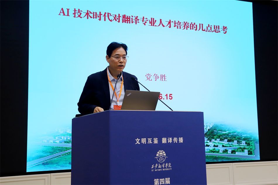 全国翻译硕士(MTI)专业学位教育指导委员会委员、西安外国语大学原副校长、教授、博士生导师党争胜作主旨发言