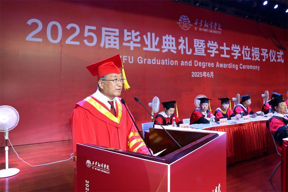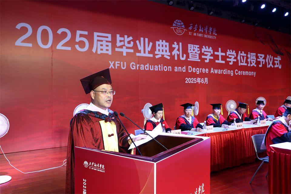 三秦都市报-秦闻讯(记者 农思思)盛夏蝉鸣,骊歌唱响。6月18日,西安翻译学院举行2025届毕业典礼暨学士学位授予仪式。西安翻译学院执行董事、校长、校学位评定委员会主席崔智林,西安翻译学院党委书记、政府督导专员、校学位评定委员会副主席栾宏,校学士学位评定委员会全体委员,全体校领导,各二级学院、各部门负责人及毕业生代表、校友代表、家长代表齐聚一堂,共同见证这意义非凡的时刻。