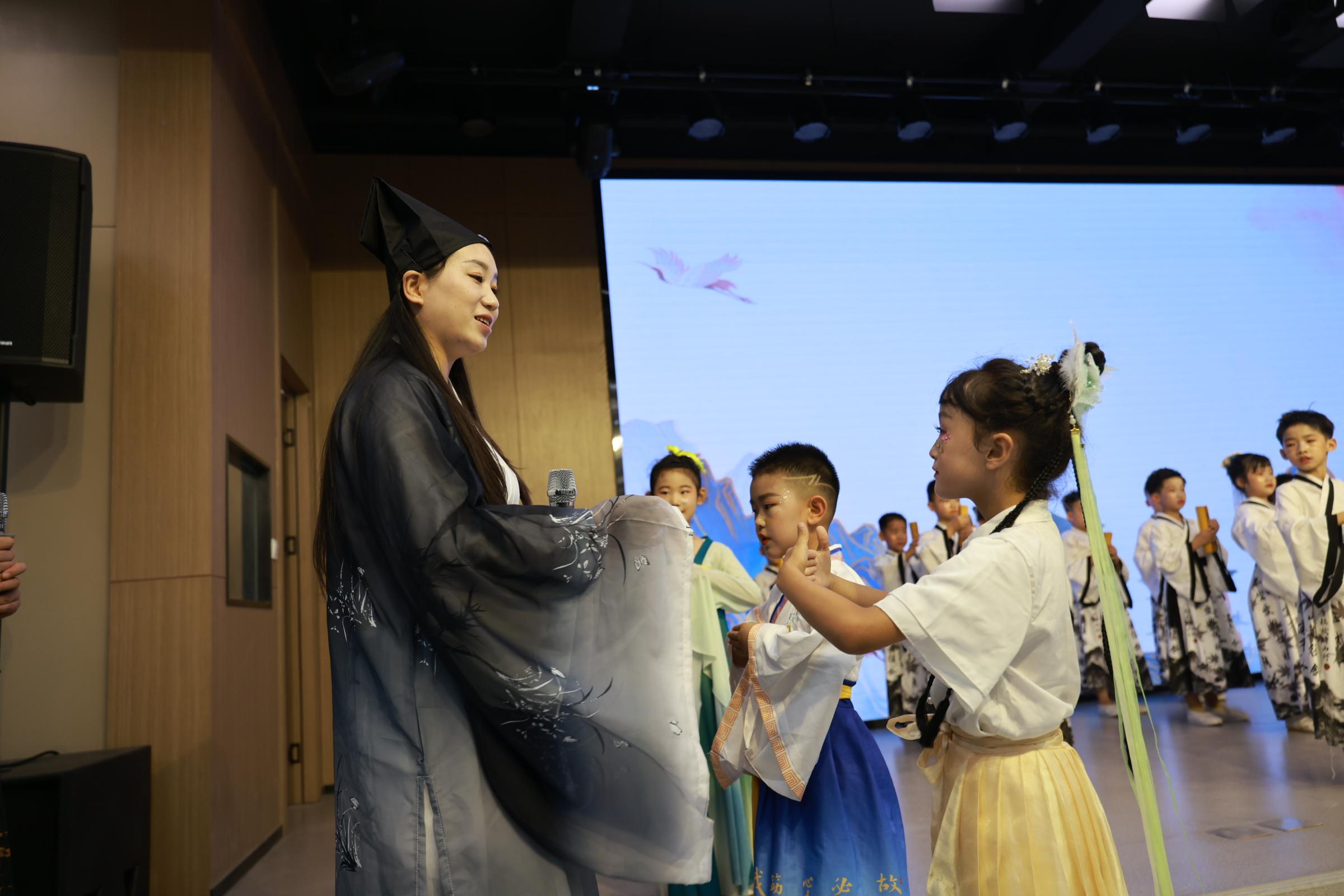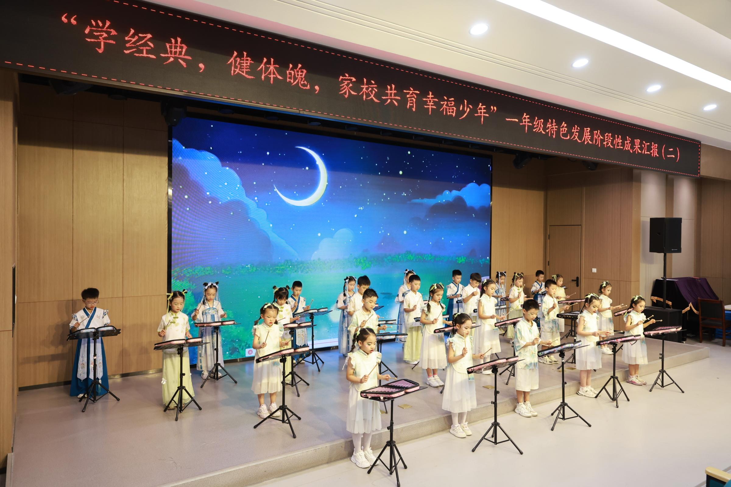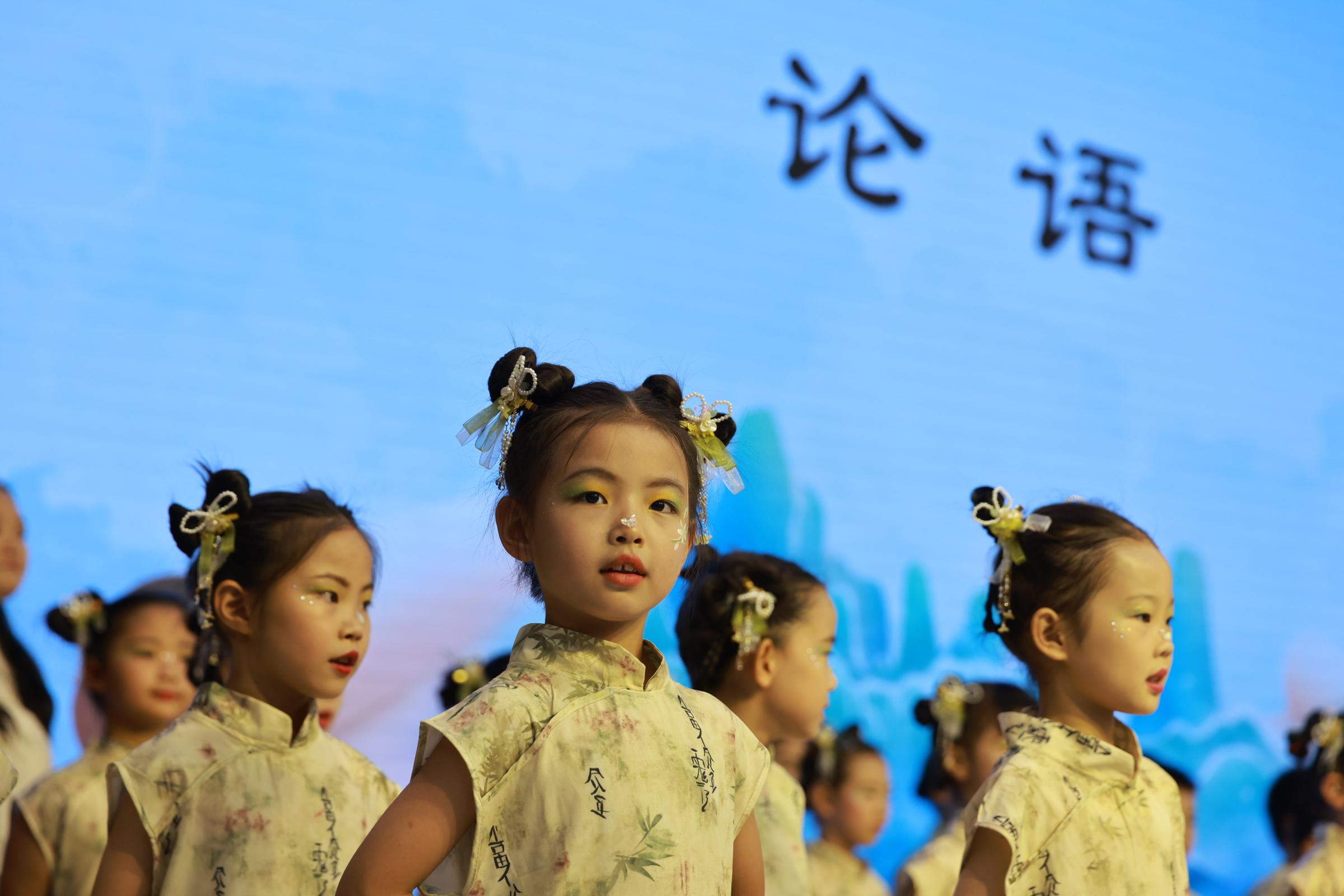 三秦都市报-秦闻讯(记者 马佩佩 党运)稚嫩童音与千年智慧相遇,萌娃学子循圣贤足迹前行。6月19日,西安西港花园学校举办了2024级学生特色发展阶段性成果汇报展演活动。本次活动以“童声古韵颂经典 薪火相传耀中华”为主题,聚焦《论语》诵读,呈现了一场充满诗意的特色课程成果,师生及家长齐聚一堂,共同见证一年级学生的成长,感受传统文化魅力。