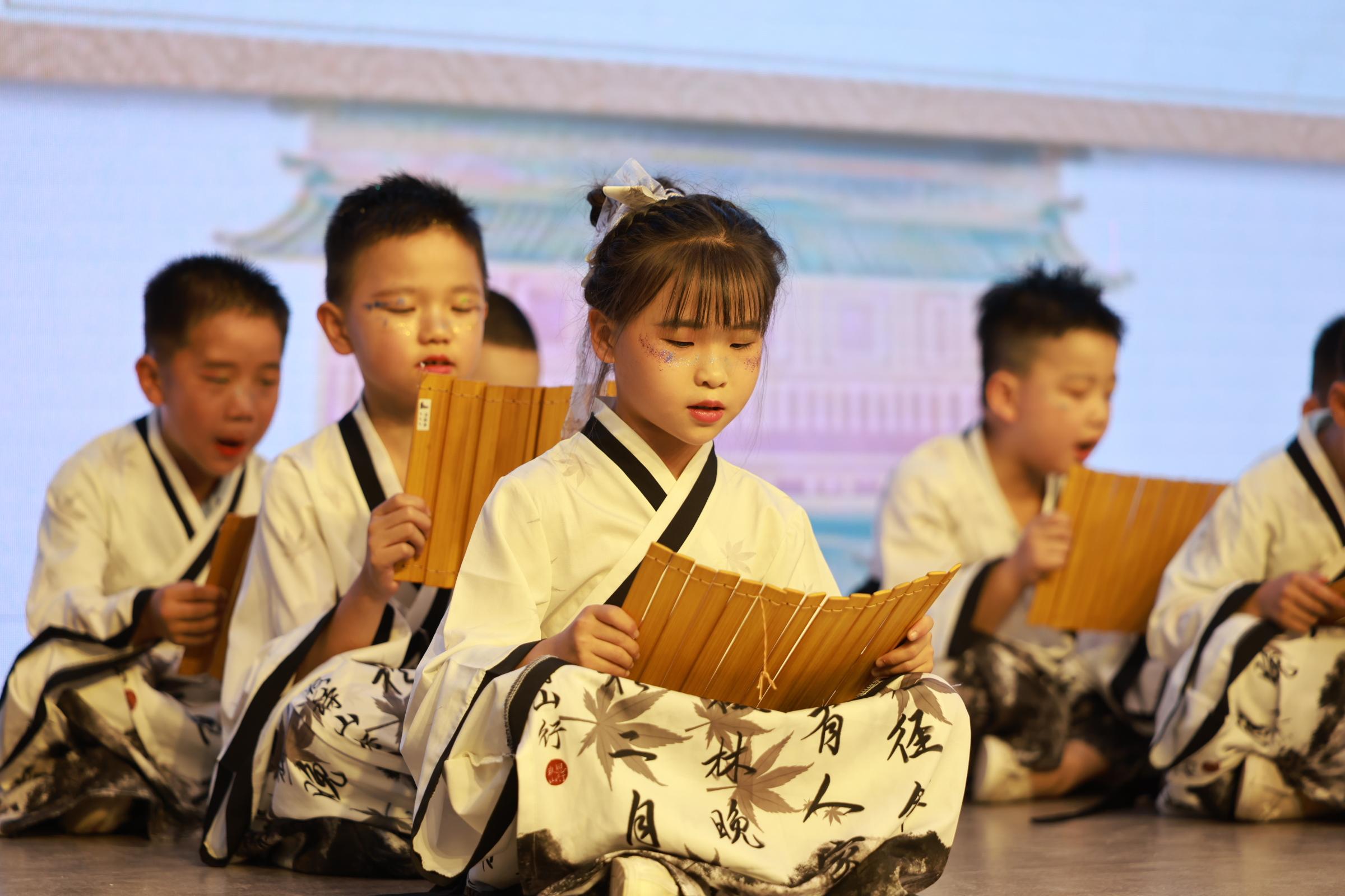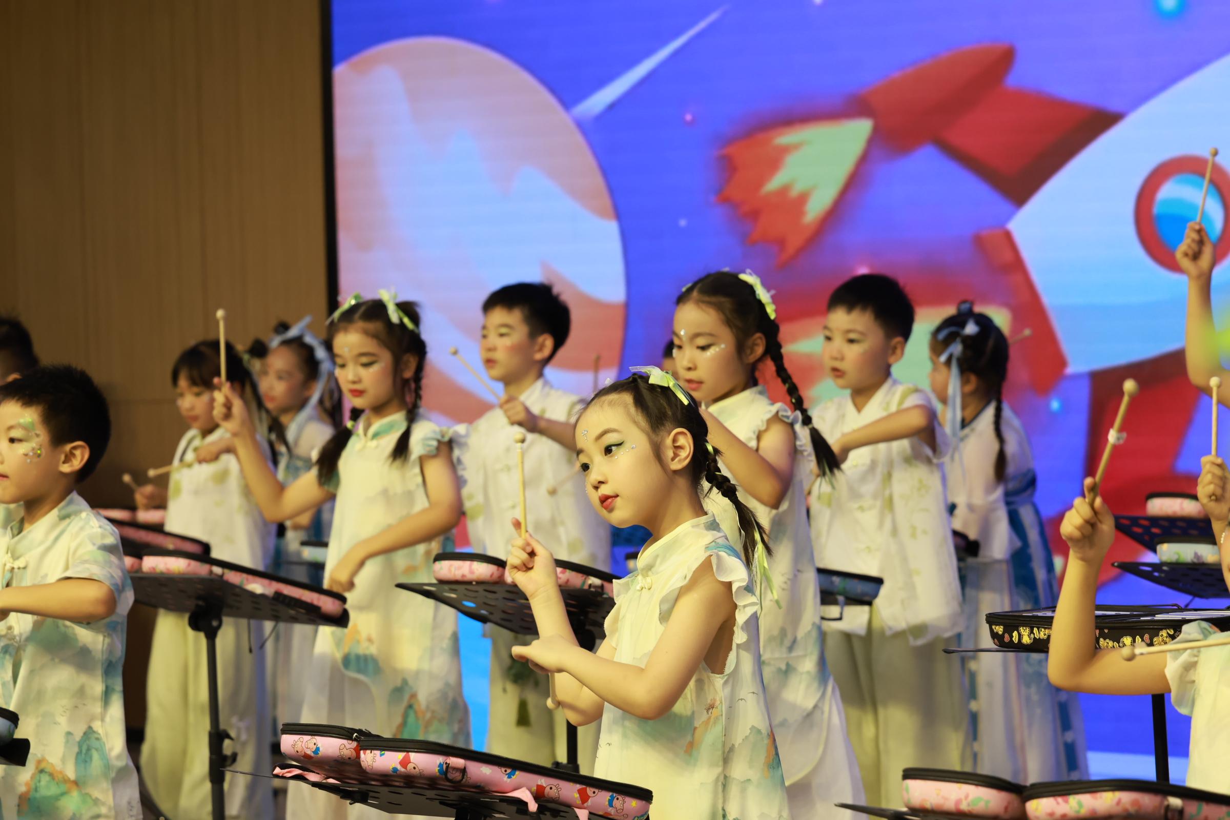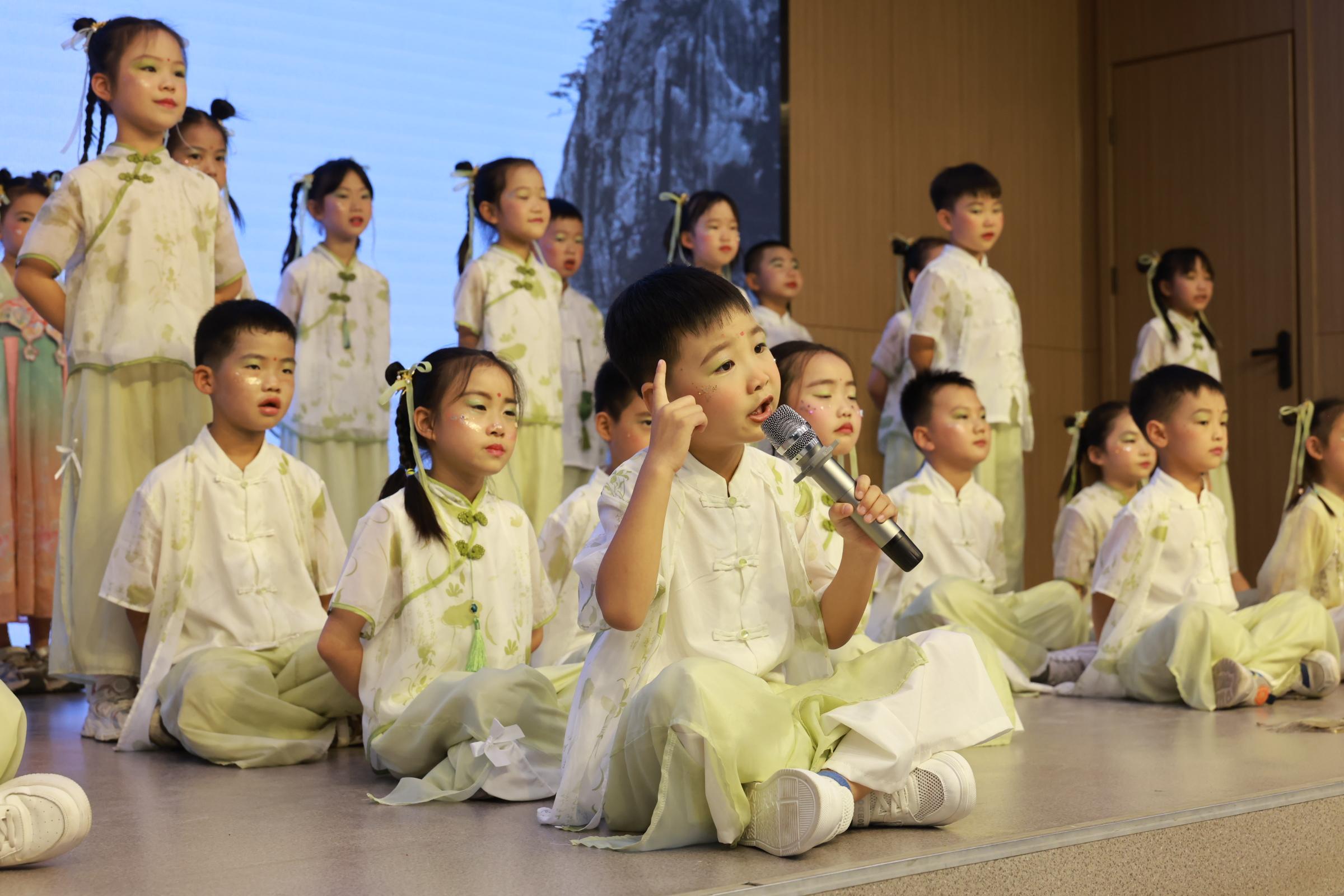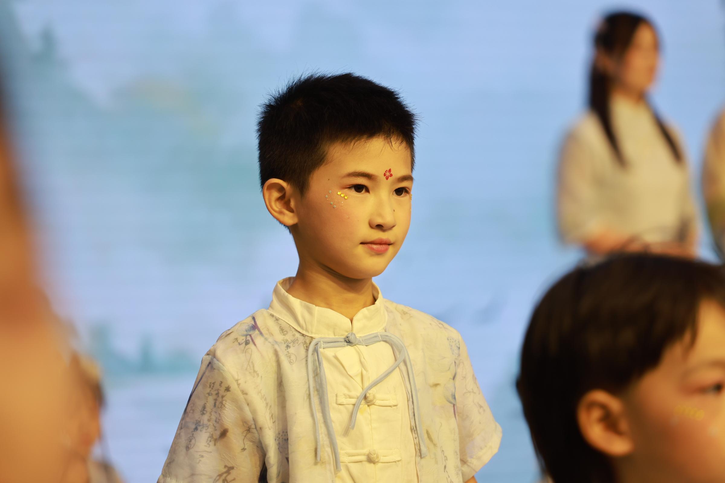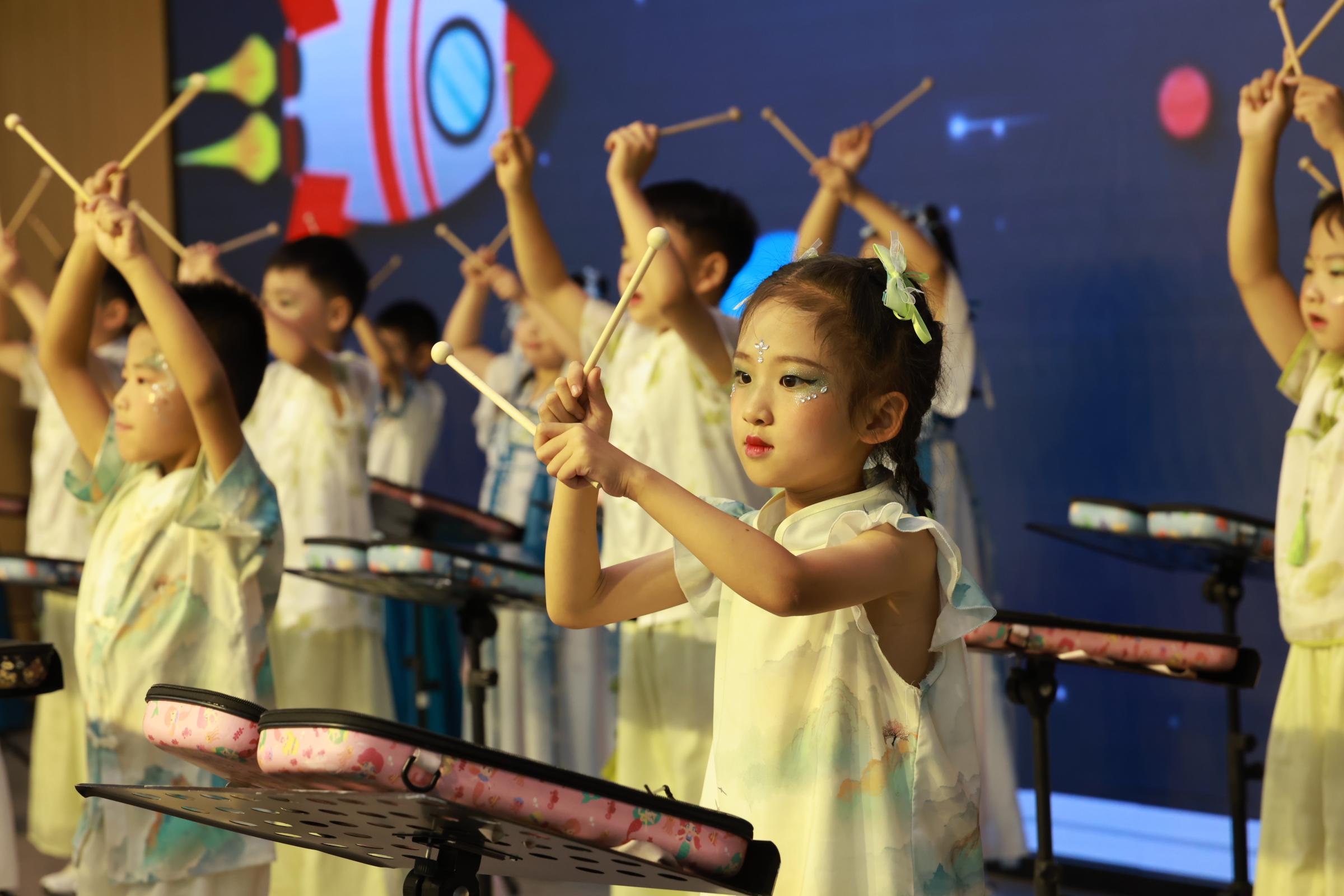 展演在开场视频《让童年像花儿一样绽放》营造的诗意氛围中拉开帷幕,现场观众共同吟诵,开启了一场跨越时空的文化对话。随后,小钟琴演奏《萤火虫》以清澈乐音感染全场。