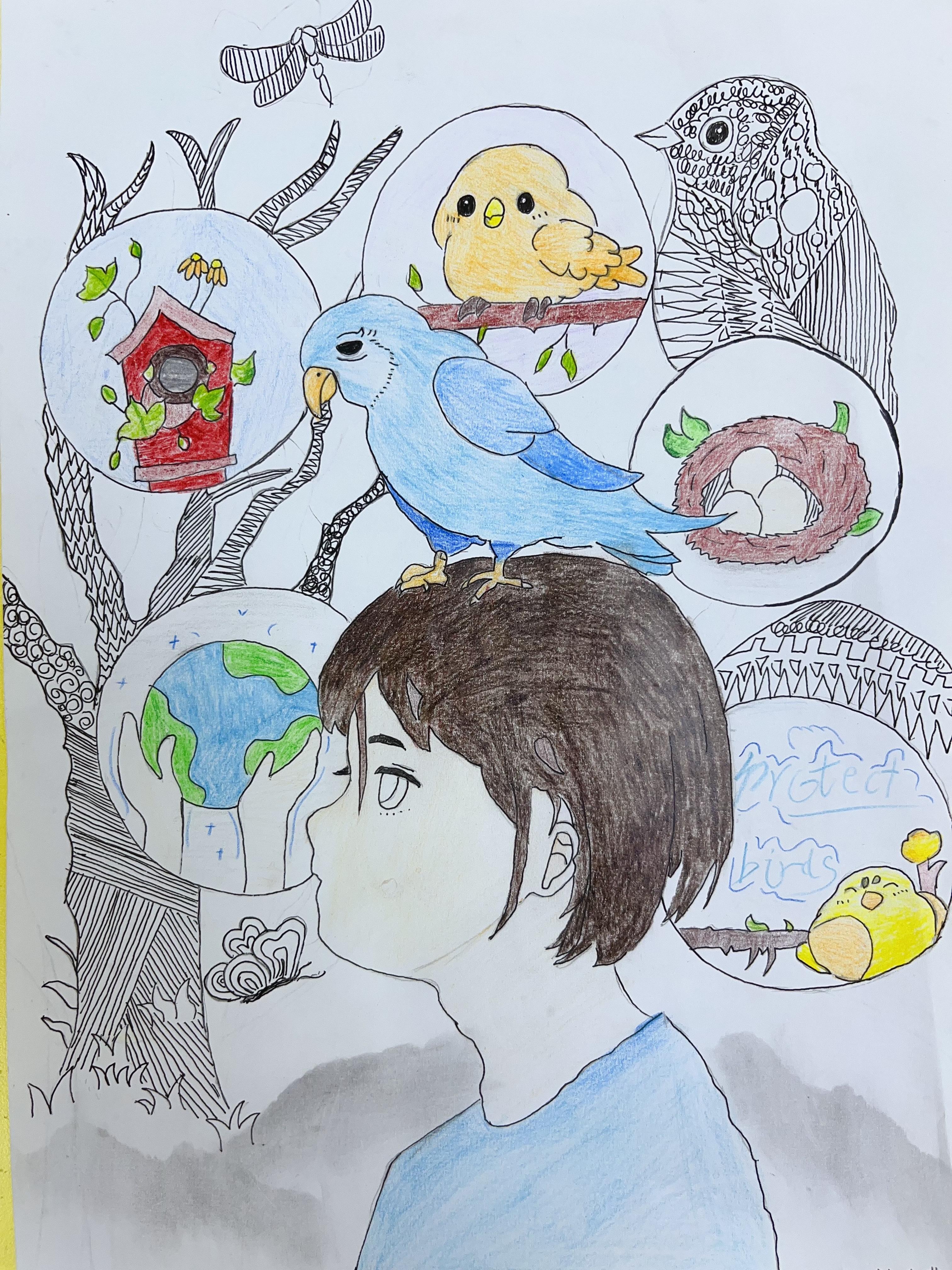 此外,学校同步举办了爱鸟护鸟主题征文和绘画活动。学生们用文字表达对生命的尊重,用画笔描绘鸟类的灵动姿态,展现了对生态保护的理解与支持。