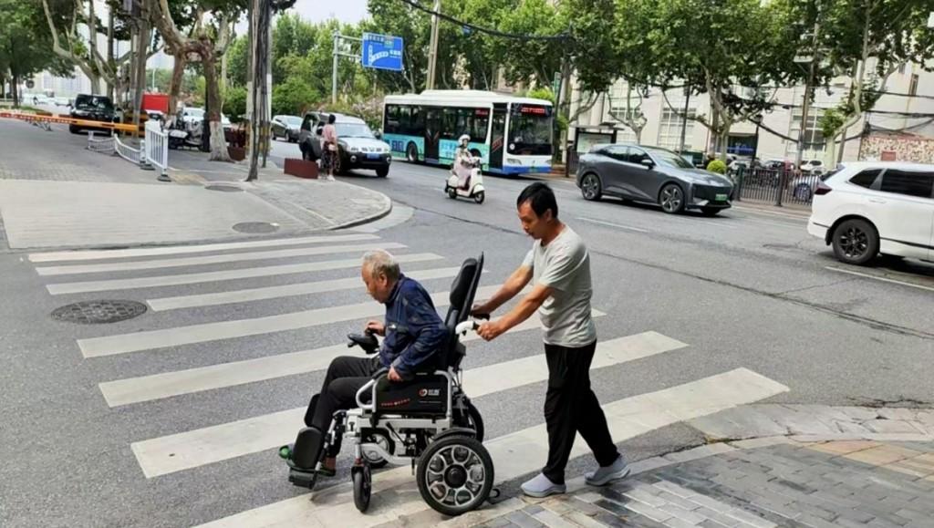 清运人员立即暂停作业,向老人施以援手,将轮椅平稳抬出深坑。为确保老人安全,清运人员还仔细检查轮椅是否受损,同时护送老人过马路至人行道,反复叮嘱后才离开。临别时,老人向清运人员致谢,他们才返回岗位,继续完成清运任务。