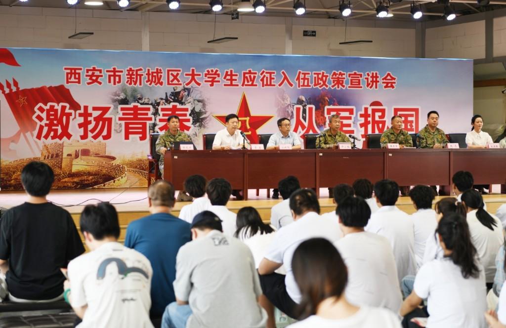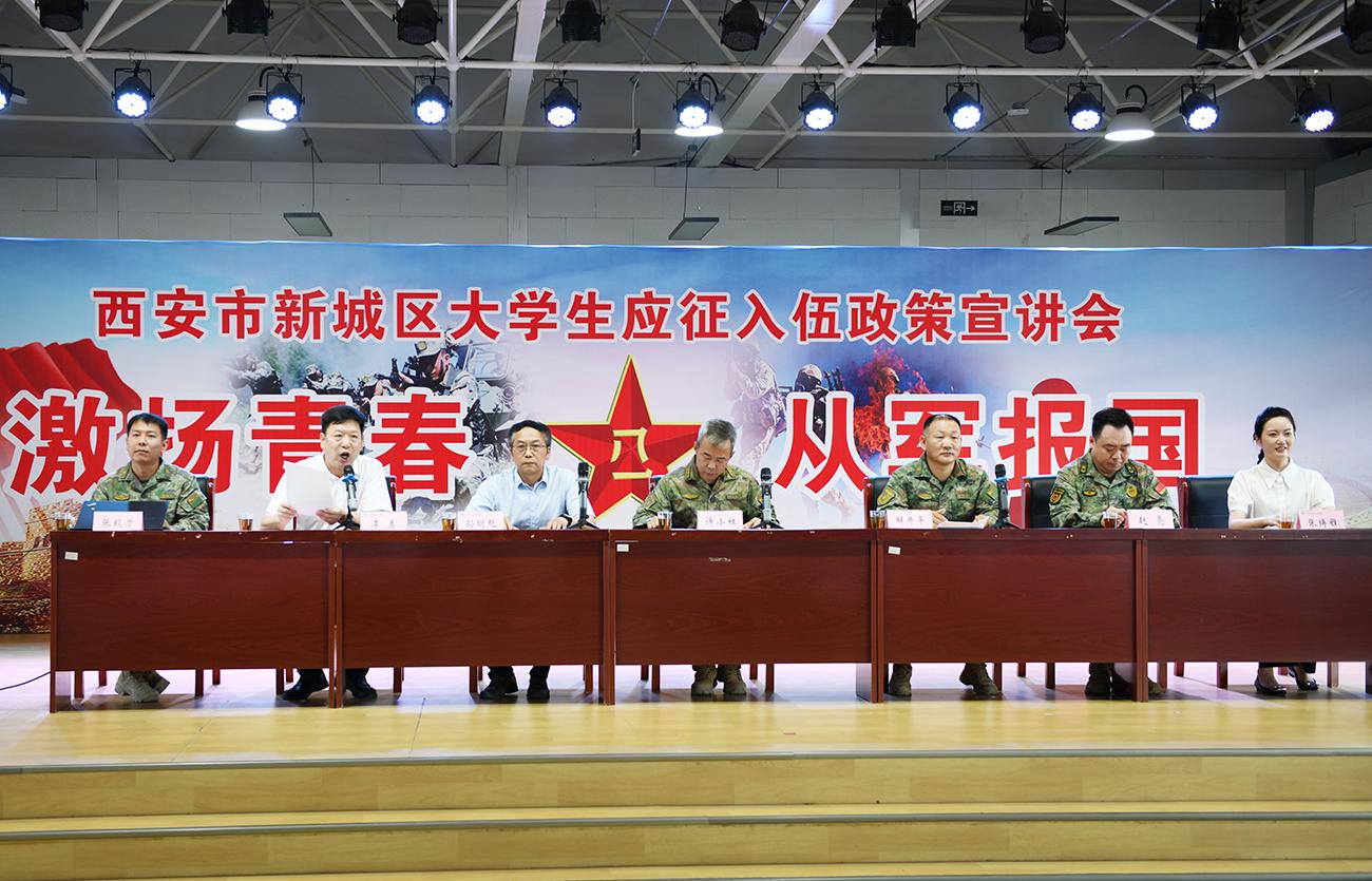 三秦都市报-秦闻讯(李洁 记者 陈飞波)为进一步拓展动员范围,深化宣传效果,激发高校学子参军报国的政治热情,6月26日下午,陕西省西安市新城区人武部走进西安铁路职业技术学院龙首校区,开展“激扬青春·从军报国”征兵政策专题宣讲活动。学院领导、辅导员及300余名学生代表参加宣讲会,现场气氛热烈,青春报国情怀高涨。