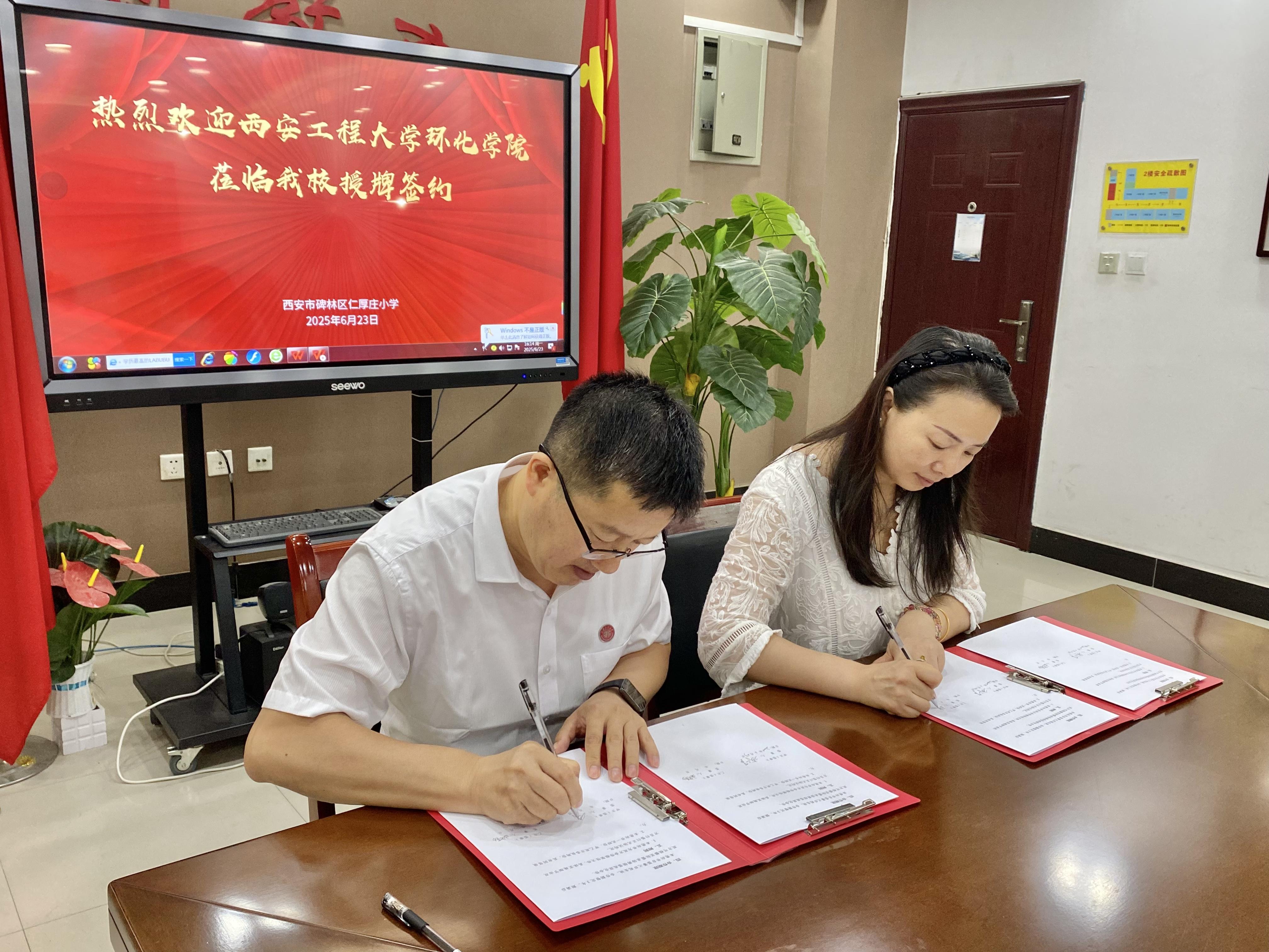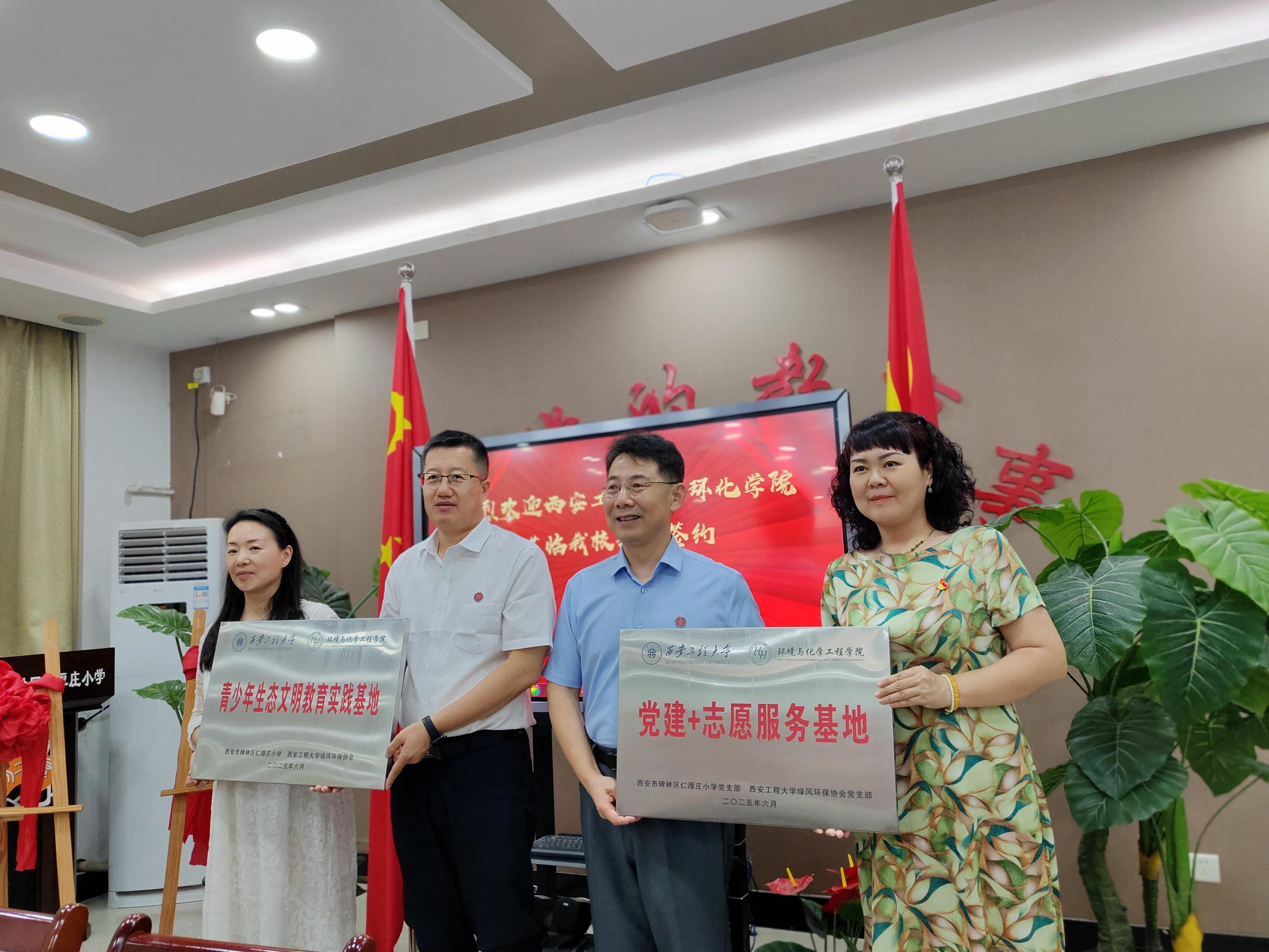 三秦都市报-秦闻讯(记者 马佩佩)近日,西安市碑林区仁厚庄小学与西安工程大学环境与化学工程学院携手举行“青少年生态文明教育实践基地”暨“党建+志愿服务基地”授牌签约仪式。仪式由仁厚庄小学教导主任车翻莉主持。两校领导、党员教师代表齐聚一堂,共同见证这场环保情缘的深度合作。