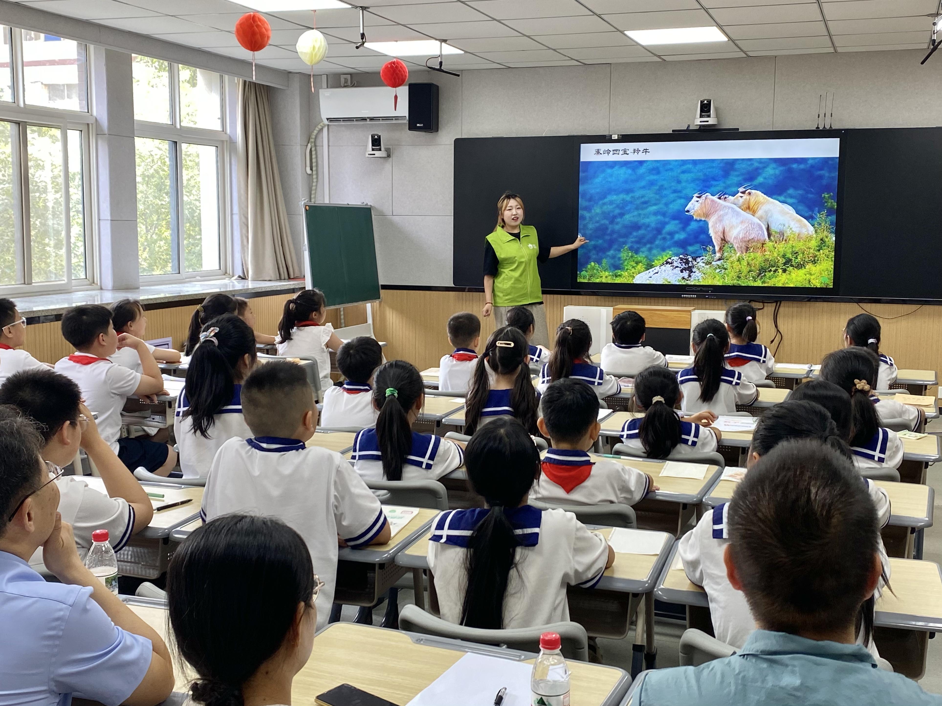 仪式后,绿风环保协会志愿者马健容在录播教室为孩子们带来趣味环保课。她以视频观看、情景问答等形式,将“垃圾分类”“水资源保护”等知识融入生活场景。孩子们踊跃举手、激情发言,清澈的眼神中闪烁着对绿色未来的向往。