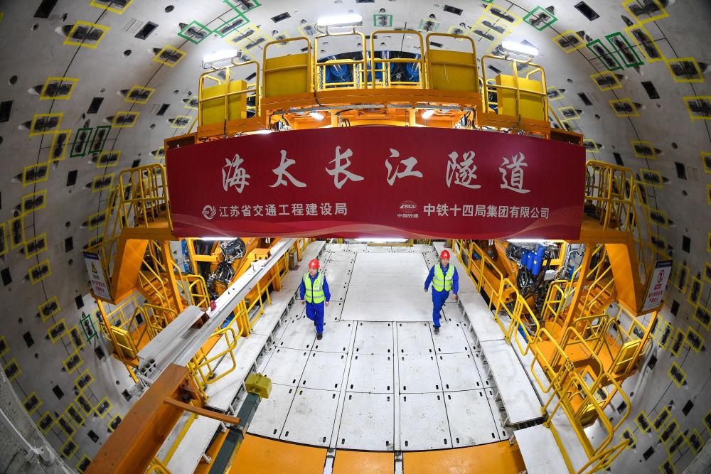 在连接南通海门与苏州太仓的海太长江隧道工程现场,最大开挖直径超16米的盾构机“江海号”昼夜不息,向着长江水下75米深处掘进,为这条世界最长的高速公路水下盾构隧道按下加速键。