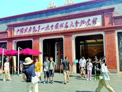 ①位于上海的中共一大纪念馆门前人头攒动。毛文琦摄/光明图片