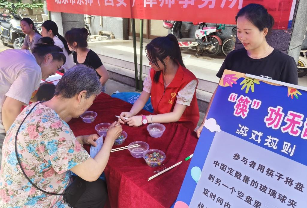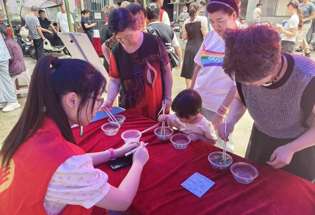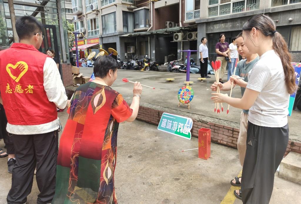 在邻里互动区,党员志愿者们精心组织了“筷”功无敌手(夹弹珠)、沙包投掷、正中靶心、保龄球挑战赛等趣味游戏。居民们在轻松愉快的氛围中比拼技艺、交流感情,在欢声笑语中拉近了党群距离,增进了邻里情谊,生动体现了“入万家”的亲和力。