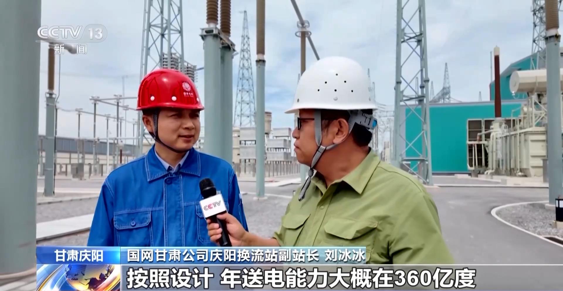 国网甘肃公司庆阳换流站副站长 刘冰冰:按照设计,年送电能力大概在360亿度,可以满足1000万户家庭一年的生活用电,清洁能源占比大概在50%以上。