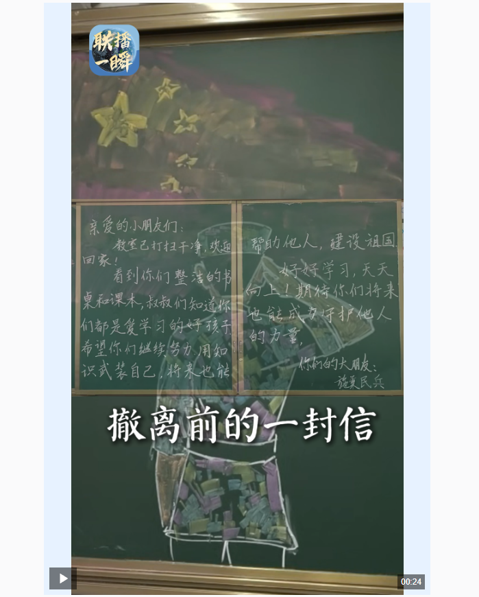 “期待你们将来也能成为守护他人的力量!”7月3日,贵州榕江县古州镇第六小学的黑板上,救灾的民兵战士为小朋友们写下了一封信。大朋友与小朋友之间,是温情与守护的传递。