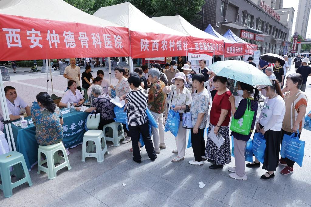 “您右腿膝盖内侧疼痛,很可能是半月板损伤,最近不要做剧烈运动,有时间到医院检查治疗。”“老人家请放心,测量结果显示,您的只是轻微的骨质疏松。”......在西安仲德骨科医院服务展位,该院的医生为居民提供“一站式骨健康惠民服务”,包括免费骨密度检测、骨病筛查、健康指导及急救常识演练及科普等多项医疗健康服务项目,并现场赠送包含疾病筛查等项目的“健康礼包”。