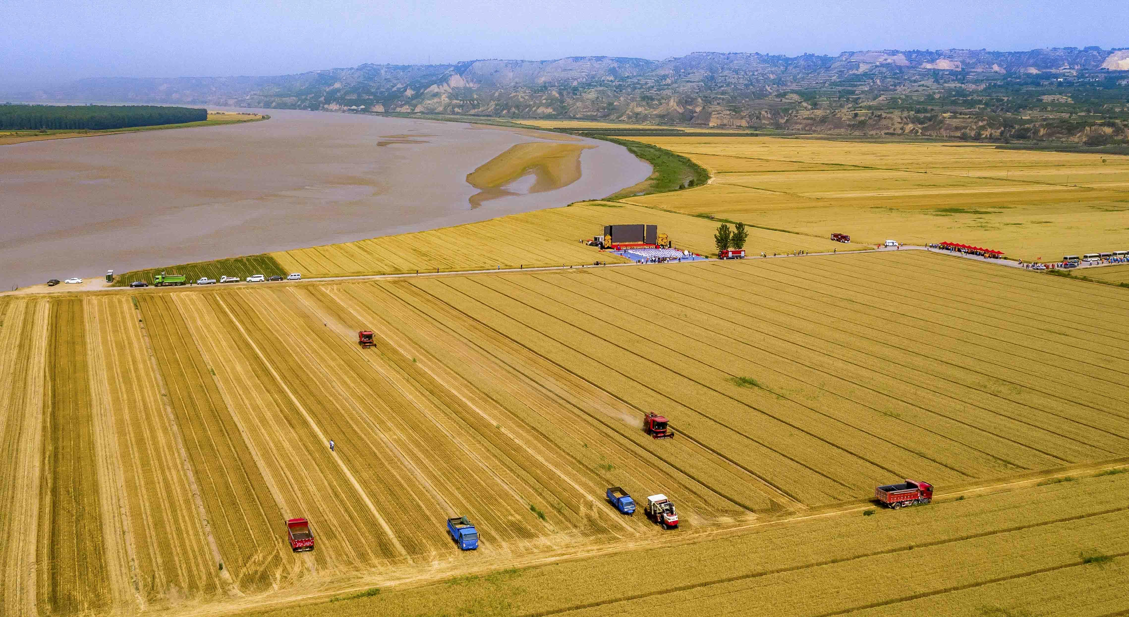 大禹渡灌区小麦丰收景象。受访者供图