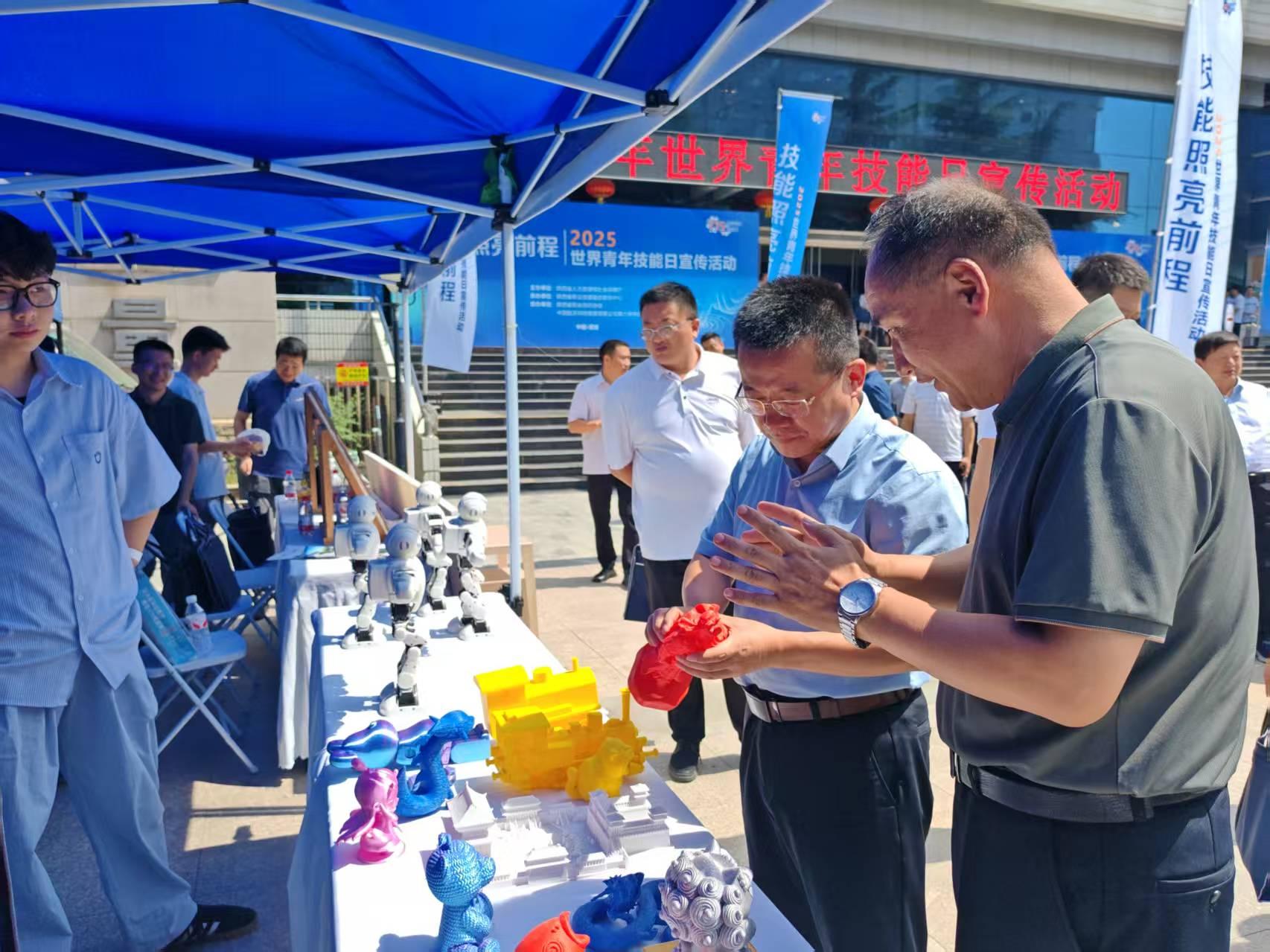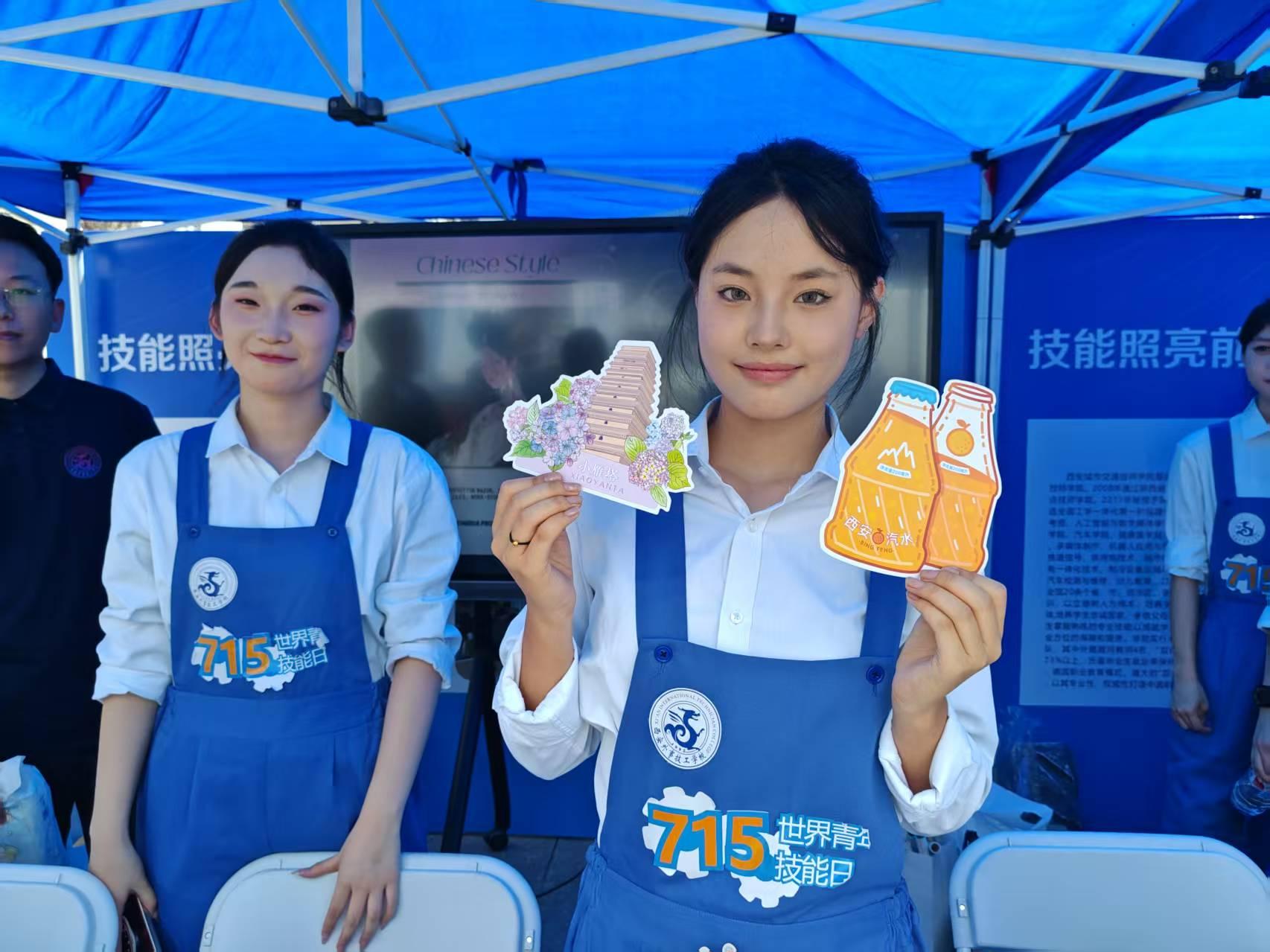 此外,技工院校展位上,一件件学生们制作的精美作品,展示着学校技能人才培养的成果。自主设计的文创产品、形神兼备的面点、机床加工的动漫人物等吸引着众多参会人员的目光。