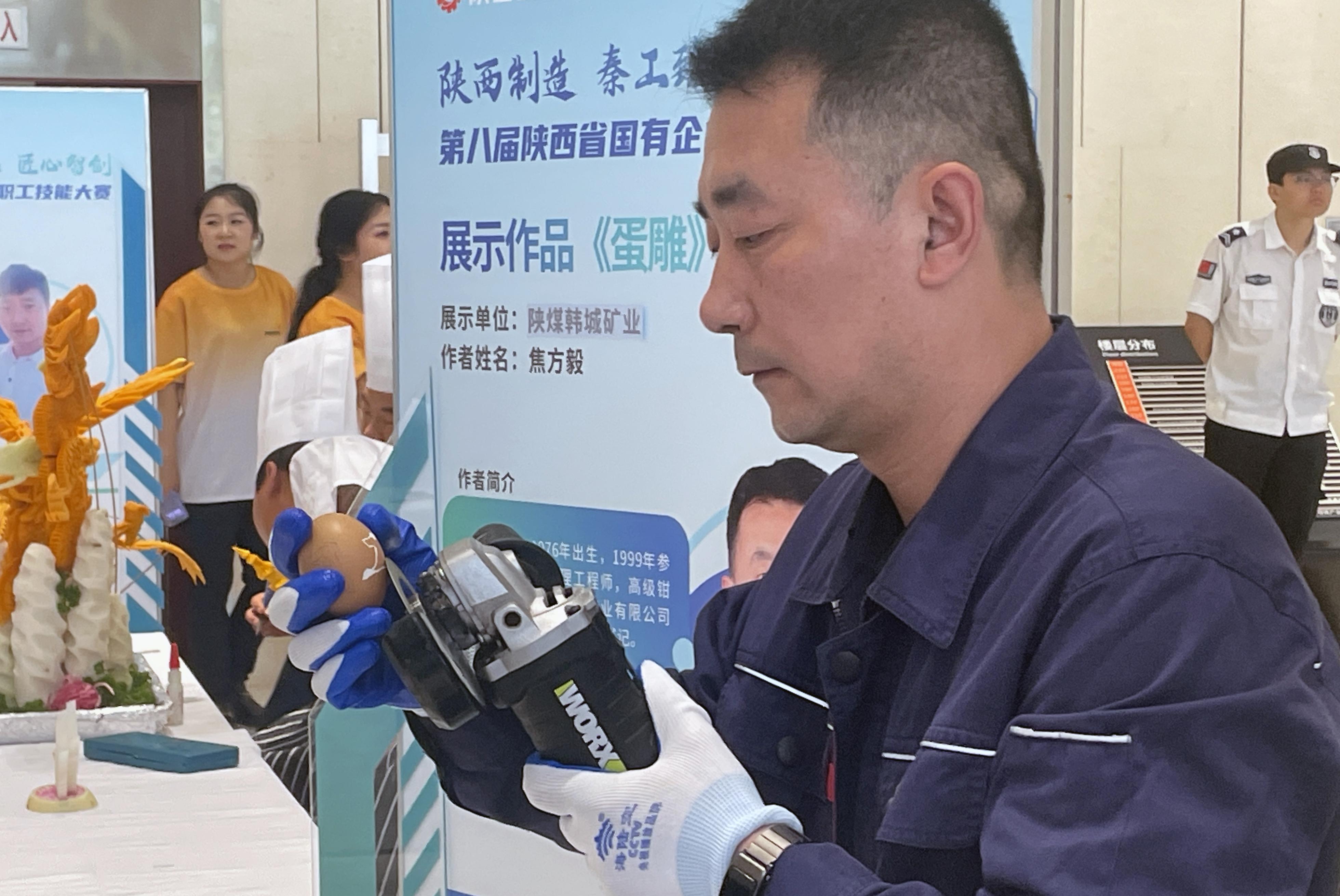 三秦都市报-三秦网讯(卫宝娜 王忠良 记者 阮班慧)7月12日,第八届陕西省国有企业职工技能大赛决赛在西安火热开赛。韩城矿业下峪口矿技能大师焦方毅带着他的“蛋雕”绝技闪亮登场,吸引了众多目光。