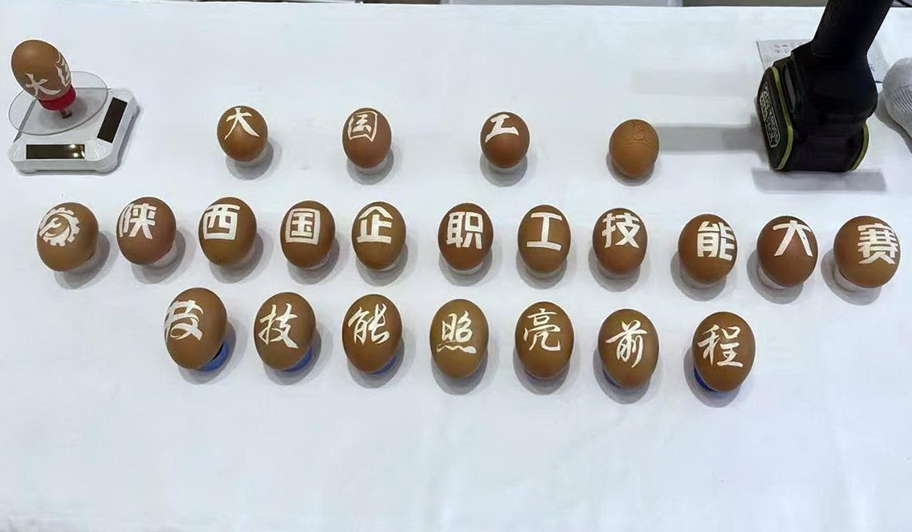 在绝技绝活展示区,焦方毅的展台前人潮涌动。他手持角磨器,专注地在蛋壳上操作着。这蛋壳厚度仅0.3毫米,包裹蛋清的薄膜更是薄至0.02毫米,相当于头发丝直径的三分之一。只见他“心稳、眼尖、手准”,不一会儿,“大国工匠,陕西国企职工技能大赛,技能照亮前程”几行字便清晰地出现在鸡蛋上,令人惊叹。