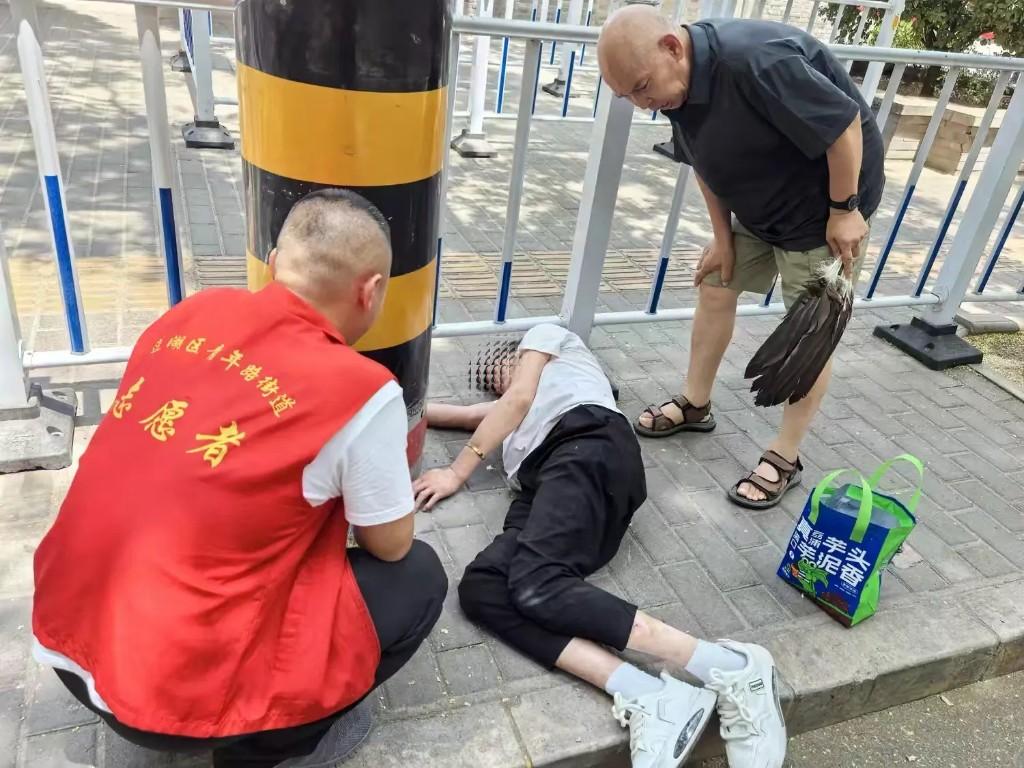 经了解,该男子因中暑身体不适晕倒,一天没吃东西,社区工作人员了解情况后,立即给该男子提供矿泉水和食物,同时,联系派出所进行身份信息核实,在征得本人同意后,社区工作人员将其送上120救护车上。