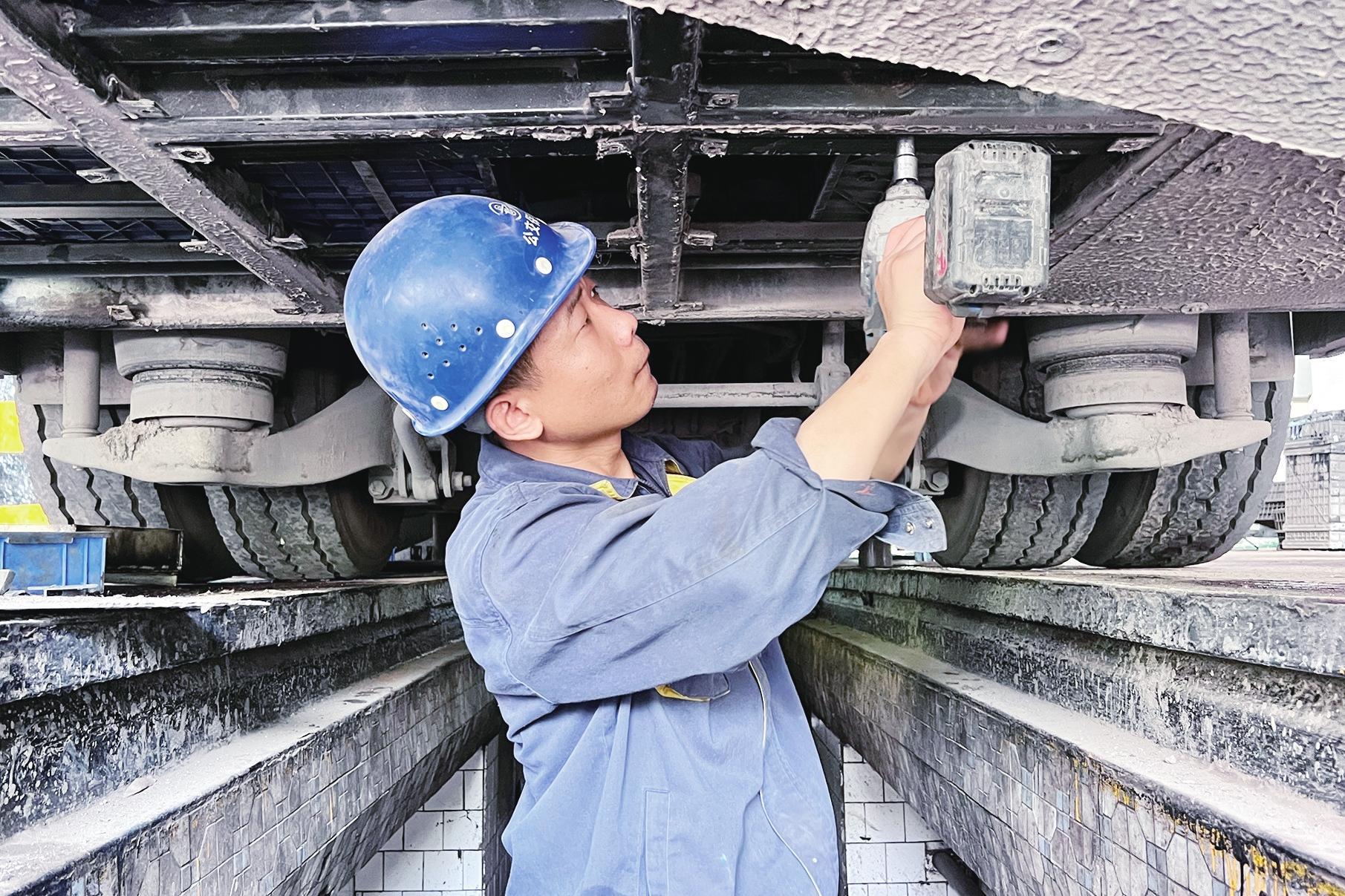 11时,日头正烈,修理工冯贝贝半蹲在狭窄空间内检修车辆底盘,地沟内残留的温度混着车间里的热气,在这方寸之地凝成一股闷热的气流。他安全帽的内衬已被汗水浸透,鬓角滑落的汗珠滴在工装裤上,又很快被体温烘干。“现在避开正午最晒的时段作业,比以前好多了。”换工具的间隙,冯贝贝直起身稍作歇息,端起一杯绿豆汤喝了几口说道。