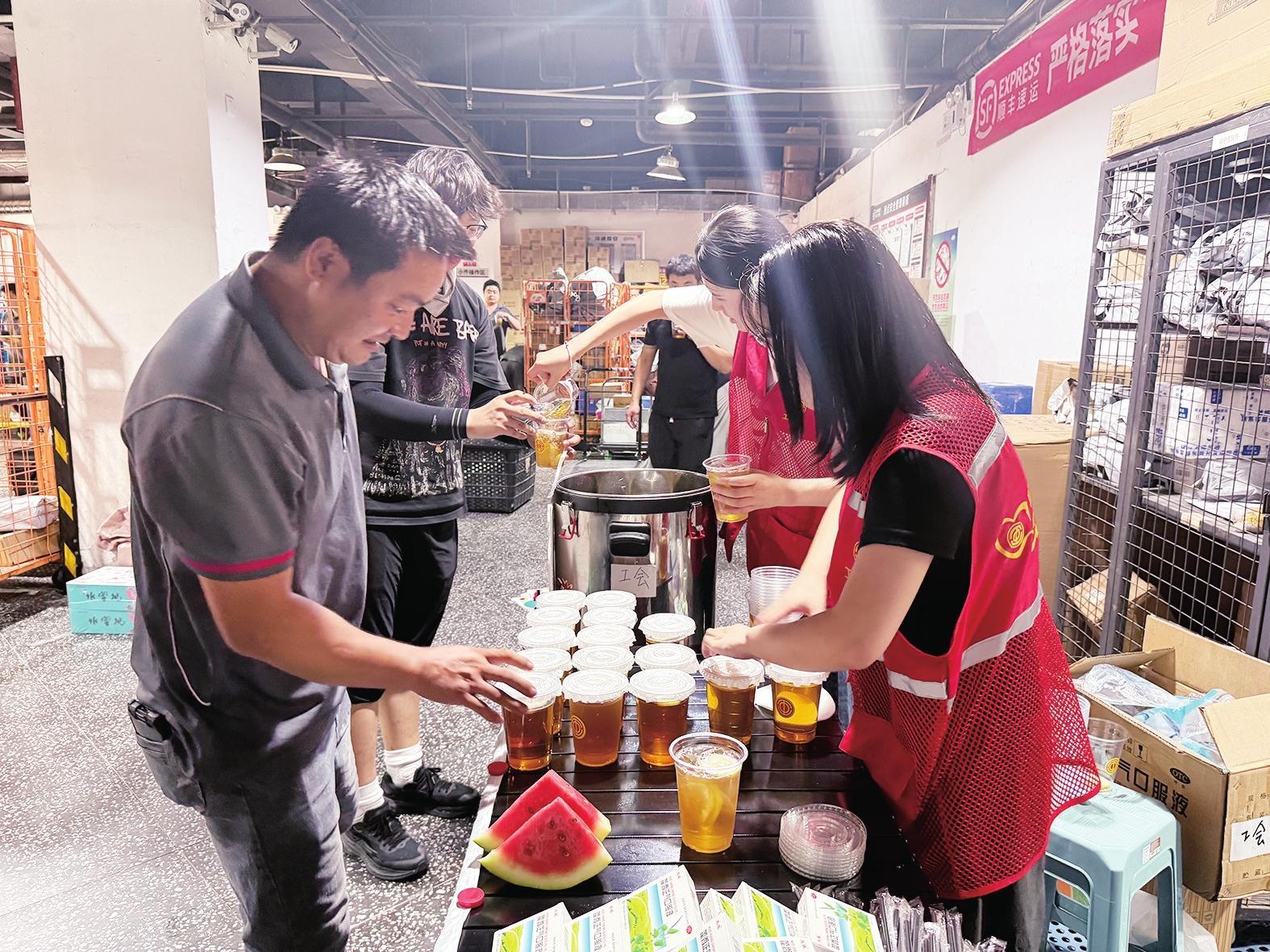 “可以自取,也可以用杯子装走。”顺丰陕西区域工会干事程蓉热情地招呼着大家,她正在和同事现场制作手打柠檬冰红茶,这是顺丰陕西区域工会开展的“夏日送清凉”慰问活动。