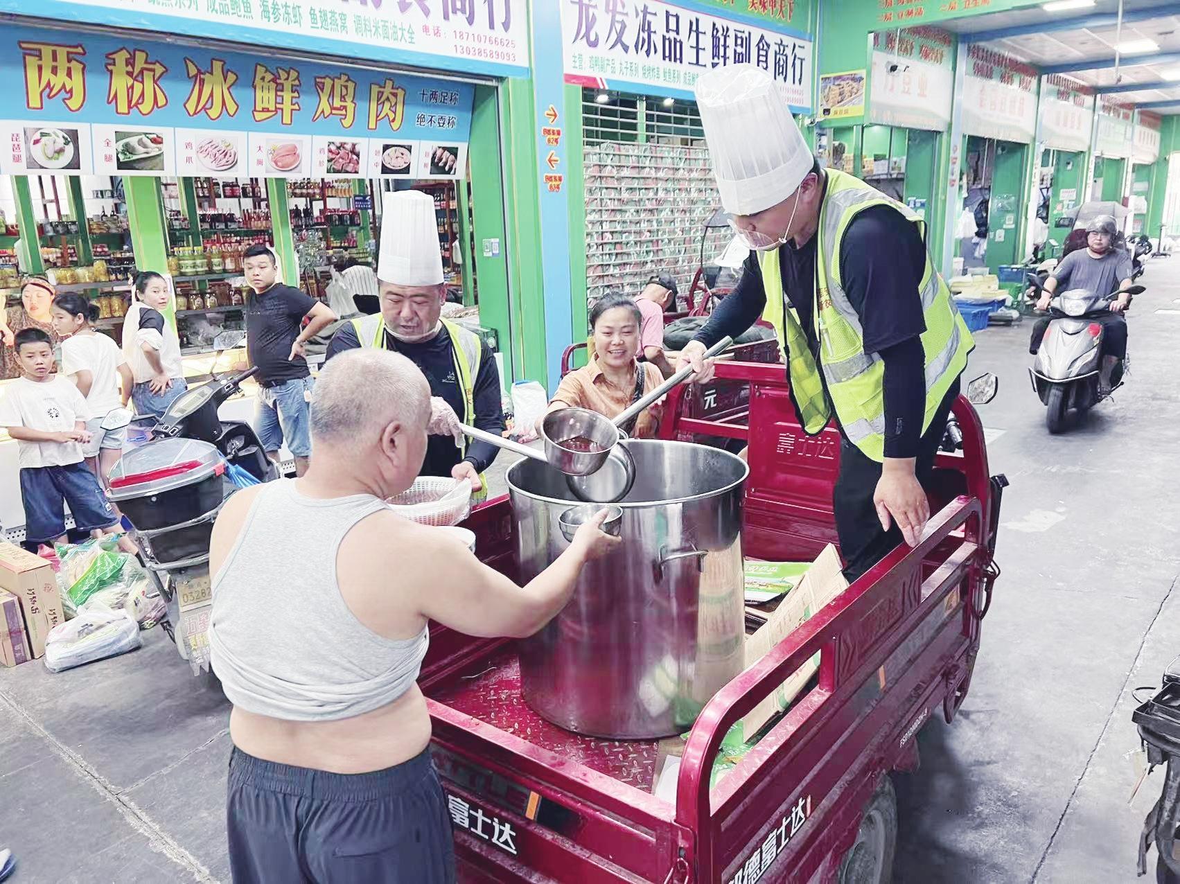“王大姐,刚熬好的绿豆汤,快盛点解解暑!”7月15日11时,西安新北城农副产品交易市场内,管理团队的工作人员用三轮车拉着保温桶穿梭在摊位间,绿豆汤的清香驱散了几分高温带来的燥热。