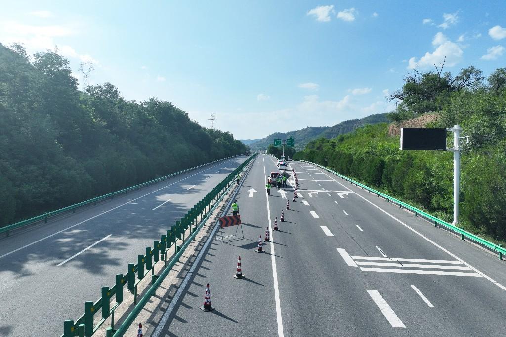 而此时的西安,43℃的高温正炙烤着关中片区的所辖高速,收费员们在铁皮岗亭里接过滚烫的通行卡;秦岭深处,养护工们正背着割草机清理排水沟,汗水顺着安全帽系带在下巴打结;在所辖咸阳武功县的高速公路上,路政巡查员用测温枪检测路面,仪器显示72.4℃,他们的鞋底已被烤得发软。