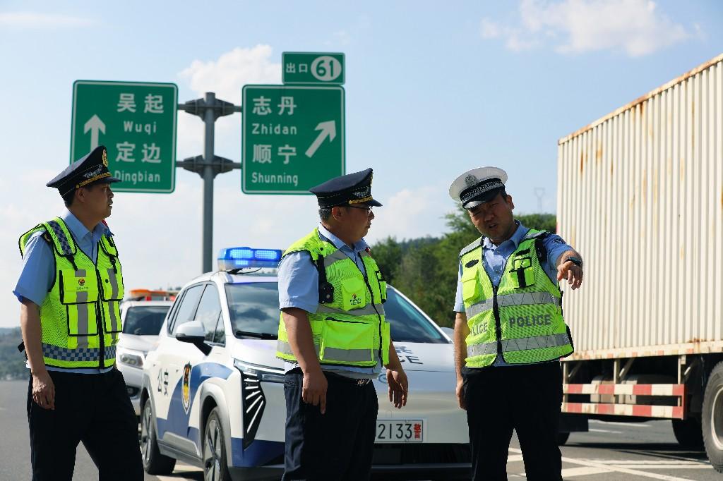 “一组注意分流车辆安全,二组注意引导!” 高速交警唐少华对着对讲机喊话。他站在管控点中央调度,反光背心的银色条纹在烈日下晃眼,后背的汗水已浸透布料。对讲机里传来的回应此起彼伏,都带着喘粗气的声响,仿佛每个人都泡在滚烫的水里。