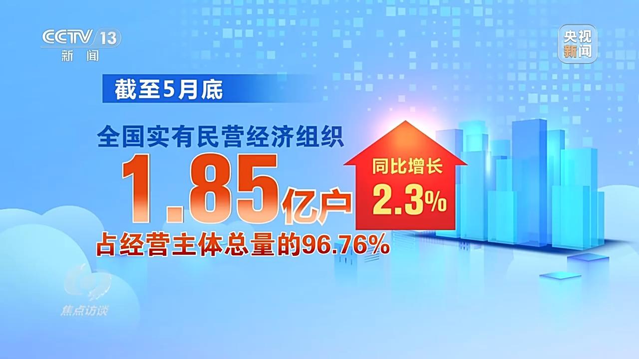 数据显示,截至5月底,全国实有民营经济组织1.85亿户,占经营主体总量的96.76%,同比增长2.3%。民营经济是推进中国式现代化的生力军,是高质量发展的重要基础。今年5月20日,作为我国第一部专门关于民营经济发展的基础性法律,民营经济促进法正式实施,开启了法治护航民营经济高质量发展的新篇章。