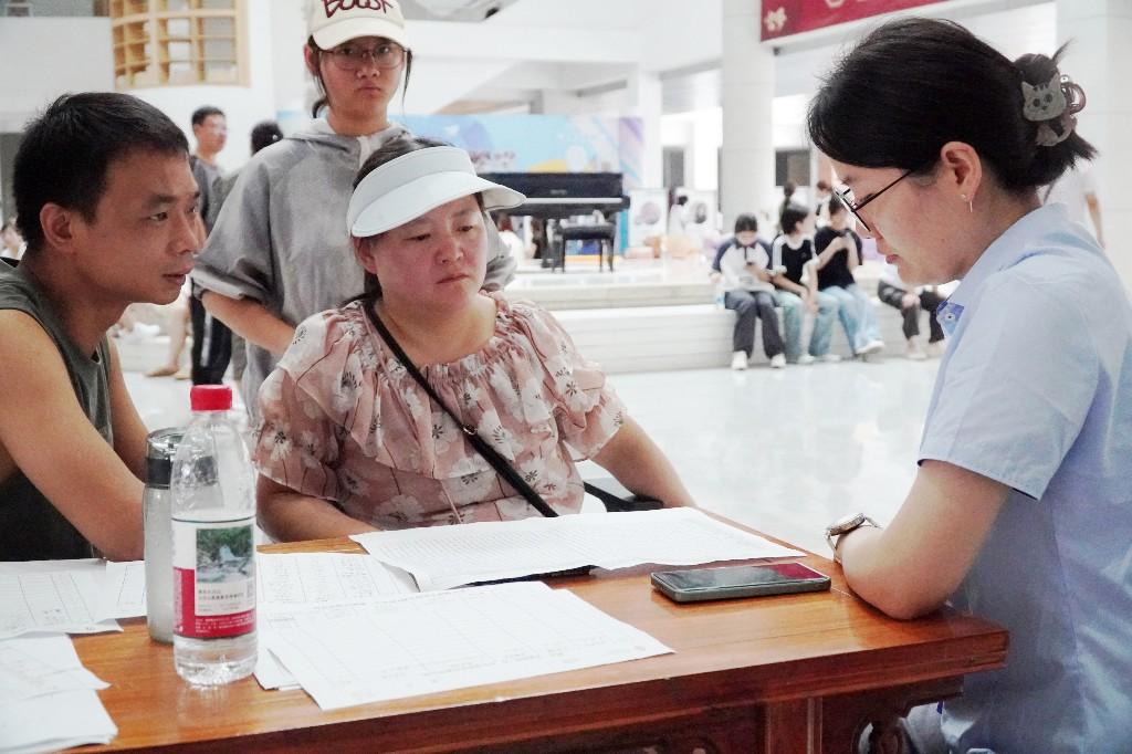 在模拟填报区,家长学生在专业教师一对一协助下,依托真实志愿填报系统进行实操演练。从梯度设置到学校定位,从规避风险到优化选择,教师们细致解答个性化疑问,引导家庭基于学生成绩、兴趣与目标学校科学制定方案,有效化解“填报焦虑”。记者在学校见到了和父亲一起来参观学校的考生田云华,她告诉记者:“学校环境非常好,还提供中考填报志愿服务。我把分数告诉老师,老师会根据我的情况给予志愿填报指导。”