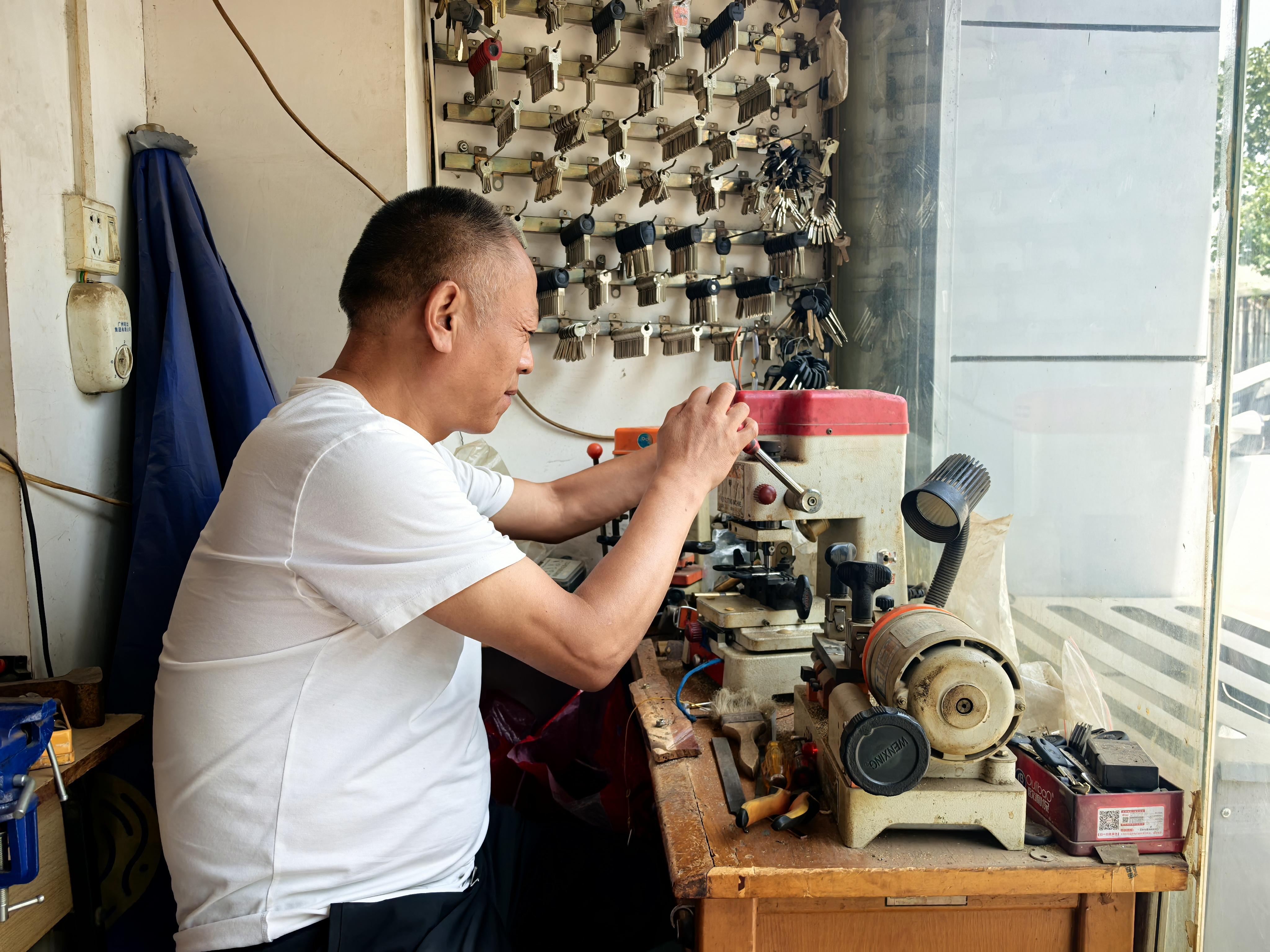 “我们社区是西安市完整社区建设试点社区,完整社区就是各项便民服务设施齐全,我们社区居民5537人,诸如上学、就医、购物、吃饭、休闲娱乐、修补等生活需求,都能在社区内得到解决。”社区工作人员张琳带着记者实地走访,只见沿街商铺林立,超市、菜市场、医院、药店、餐馆、理发店、修鞋摊点、眼镜店、婚介所和宾馆等一应俱全。在街转角,记者看到一家配钥匙的小店,店主正在机器前工作。
